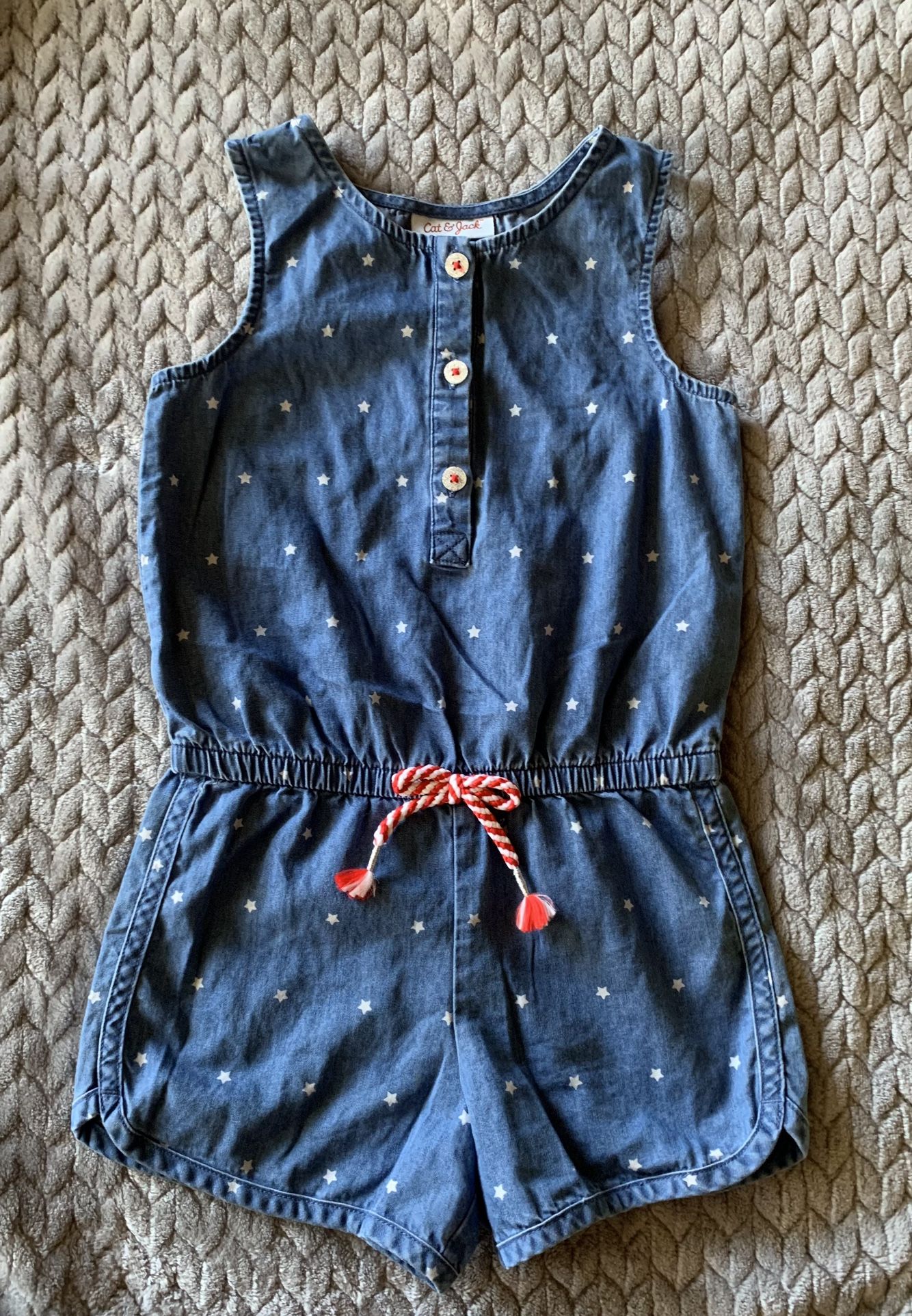 This adorable jumper is perfect for summertime with its light weight material. It’s got a decorative red and white stripped bow at the waist and small white stars all over. Condition: Excellent Brand: Cat & Jack Size: 4T ❤️like to be sent a private discount ✨Bundle to save 🎉 I love offers!!
