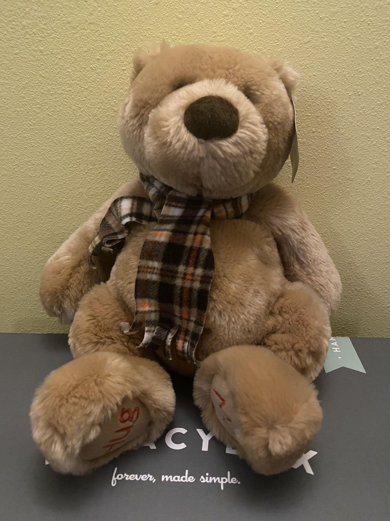 Gund Plush Bear Brown Soft Cuddly # 41280 Hug Me on the Feet, cute Scarf, 16" long, excellent condition, never played with by kids, non smoking home