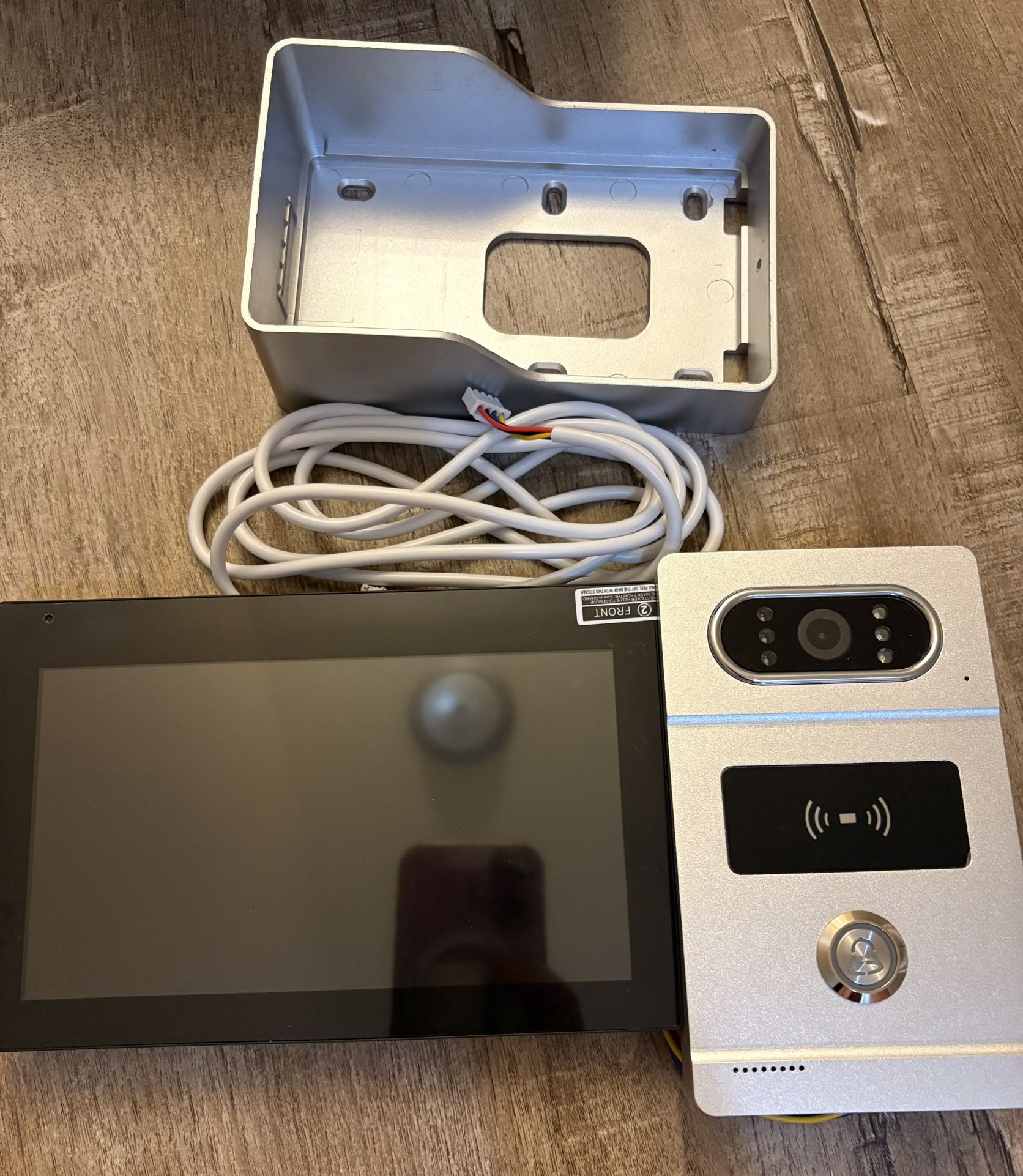 Selling a 2-wired video intercom system with one 7-inch monitor and one outdoor doorbell camera. Only includes the monitor, outdoor unit, and one connecting wire — no power adapter or other accessories. Good for repair, replacement, or DIY use. Selling very cheap since it’s missing parts.