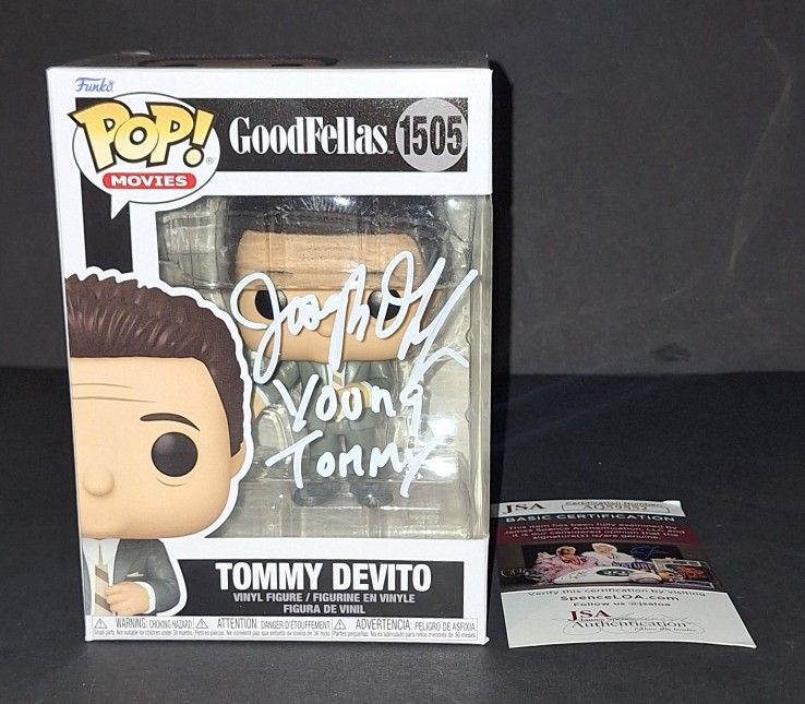 Signed in white paint on a Tommy Devito Goodfellas Funko with "Young Tommy" inscription. JSA authenticated. Will come with the hologram and matching card. Will come in a pop protector. Please see my other items. Will ship secure within one business day. Please message with any questions thank you! Memorabilia