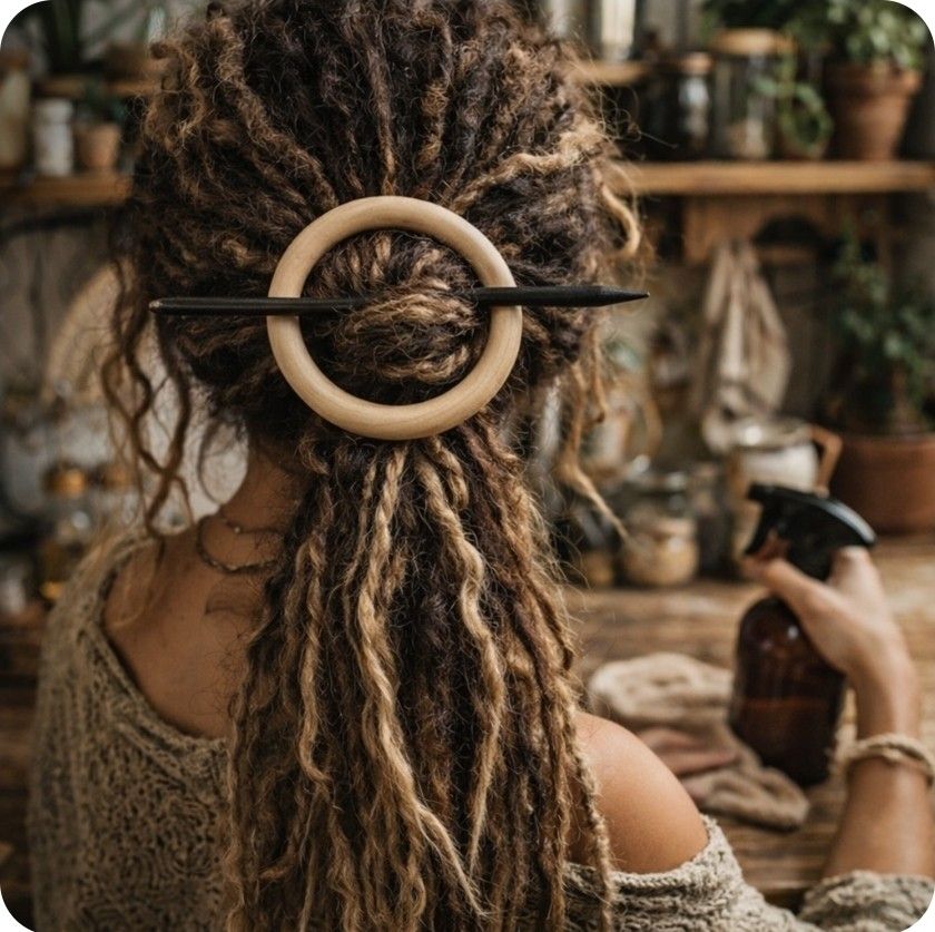 Natural Wood Hair Stick Accessory Dread Tie Ring Thick Hair Ponytail Solution