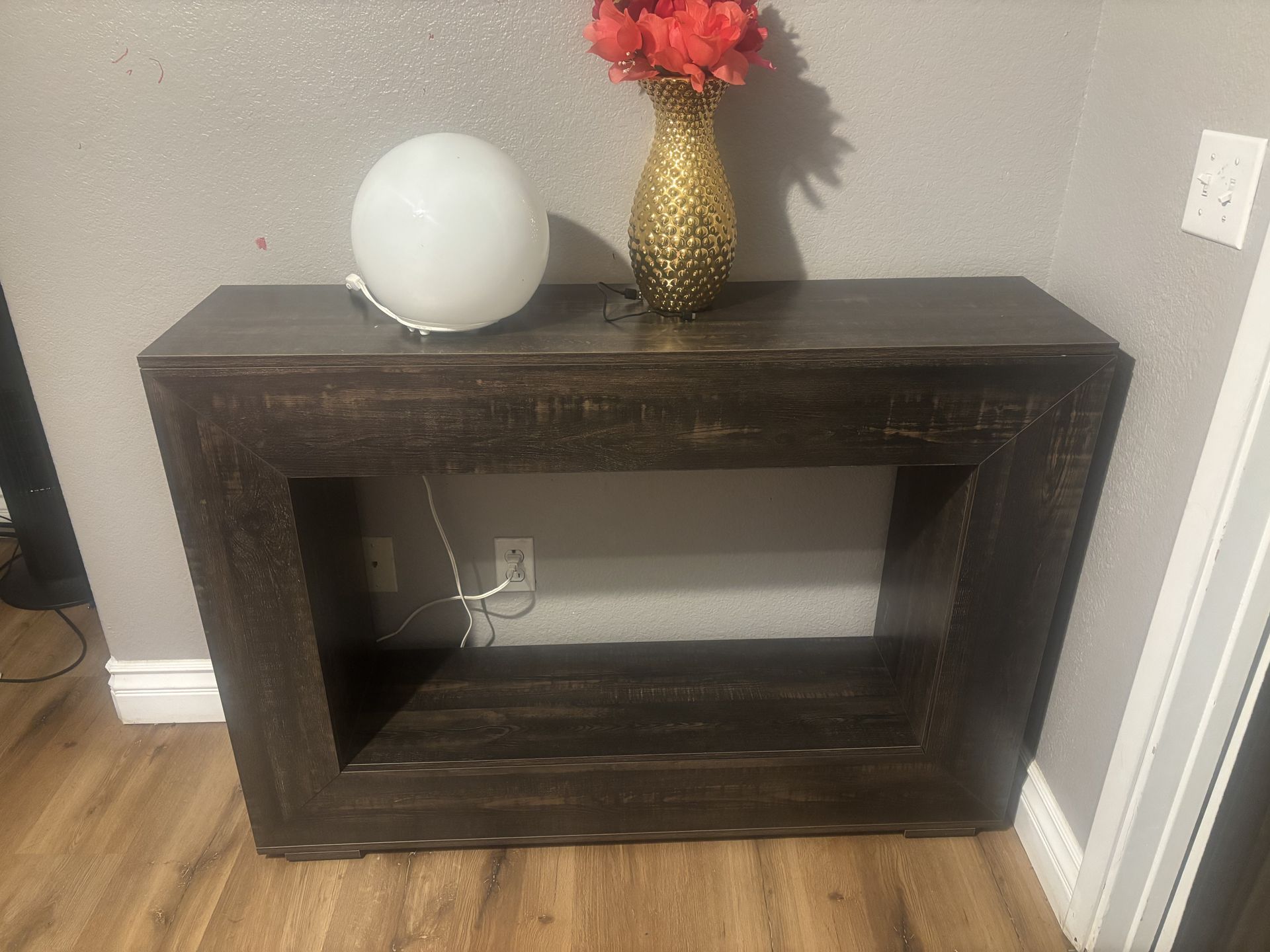 Moving Sales. Beautiful dark wood console table in great condition. Perfect for an entryway, hallway, living room, or behind a sofa. Solid and sturdy with a modern open design and lower shelf for extra storage or decor. Bought couple of months back. Great for displaying lamps, plants, books, or decorations. Features: • Dark wood finish • Modern open-frame design • Bottom shelf for storage • Very sturdy and clean • Excellent condition Approx Size: About 4 ft long Pickup: Local pickup only.