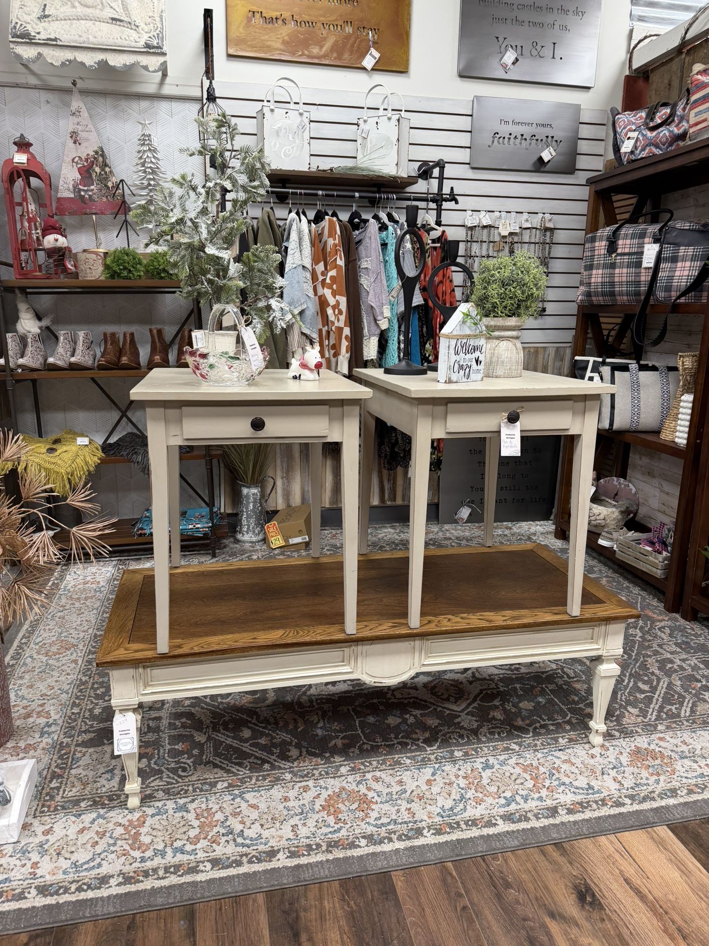 Beautiful Drexel coffee table with an antique glazed finish. Several other accent/side tables available as well. All located in Palmetto Designs @ The Lazy Daisy gift store Hull street. 4841 commonwealth center parkway. Midlothian, Va Can purchase over the phone, in person or by texting the daisy hotline. Pick up within 3 days Text me at +(contact info removed) with questions, Happy to transfer between hull street Daisy and short pump Daisy for pick up once paid. π