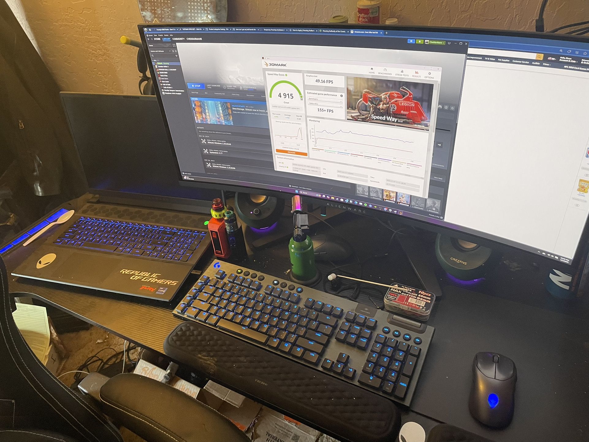 Alienware M18 R2 - 3000$ I9-14900hx 24 core 32 threads 5.8ghz Nvidia GeForce RTX 4080 12gb ddr6 32gb Kingston Fury Impact 6400 mt/s 4tb crucial T705 gen5 ssd 4tb Samsung 990 evo plus 2x2tb Micron 2400 ssd 2560x1600 165hz g sync display Alienware Pro wireless headset Alienware Pro wireless mouse Razer deathstalker keyboard Alienware backpack for 18in laptop and accessories Alienware AW3423DWF gaming monitor 3440x1440 165hz qd-oled Absolutely amazing setup - backpack designed specifically for this laptop. Absolutely the best laptop money can buy at this time. 12tb of total storage. Much less than I paid for everything.