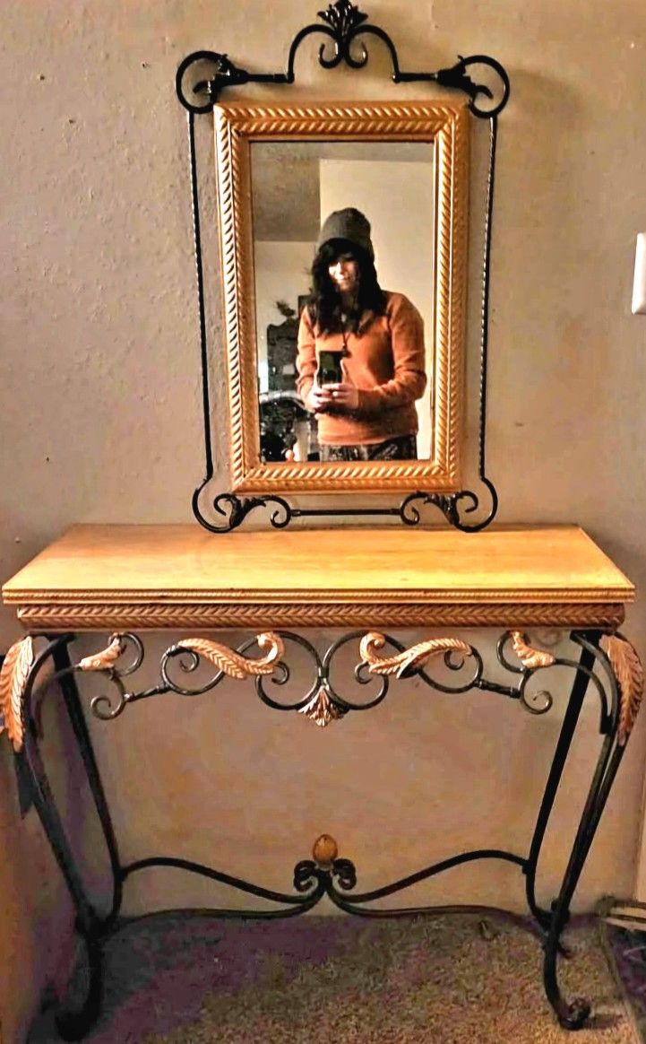 Wood and metal console table with matching mirror. Lightly used and in very good condition. The table is very sturdy and neither piece have any issues or damage. $50 obo