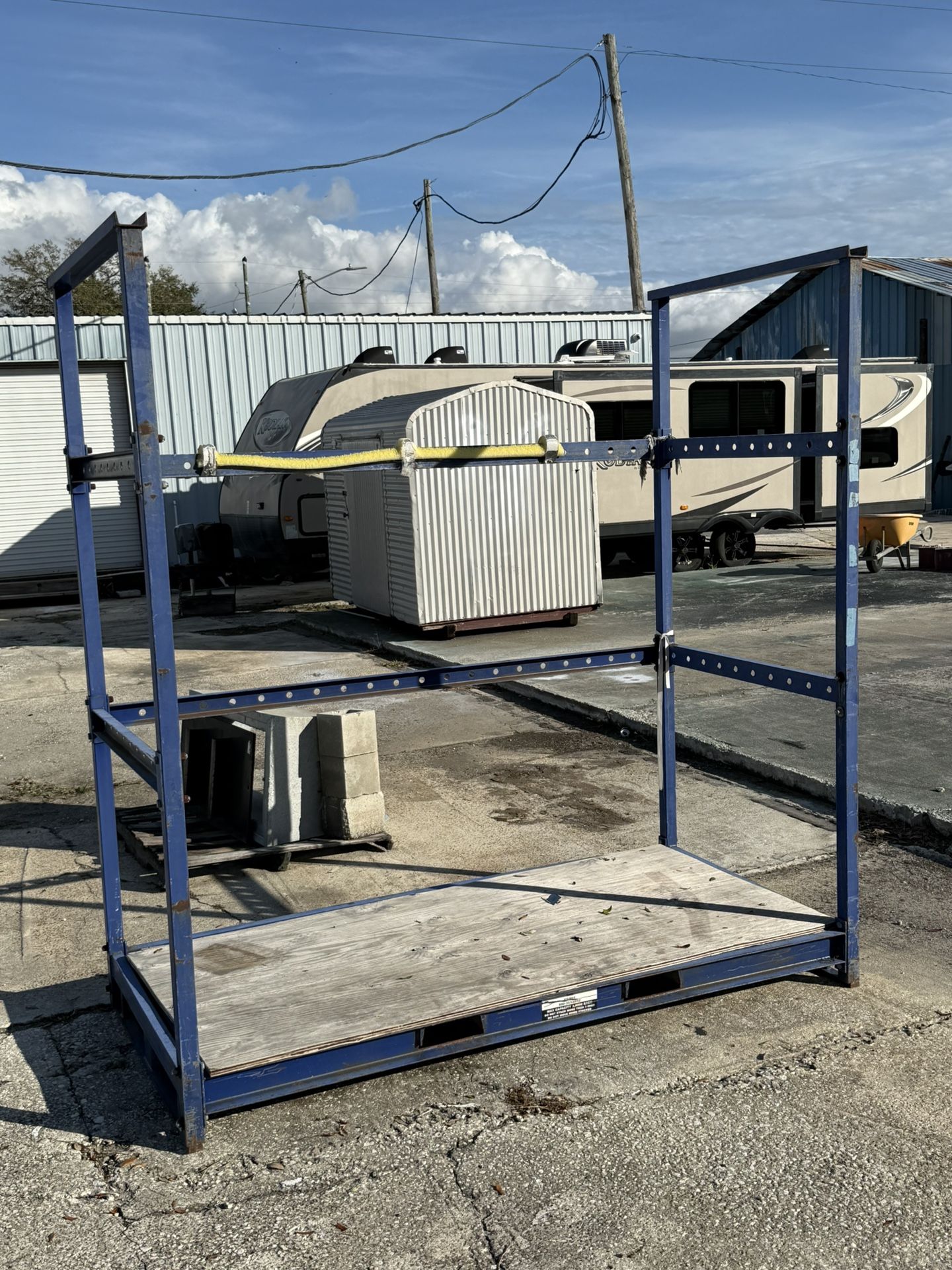 Large Metal Pallet Rack 44x89x94 Bottom has holes for forklift No cross beams for upper What you see is what you get