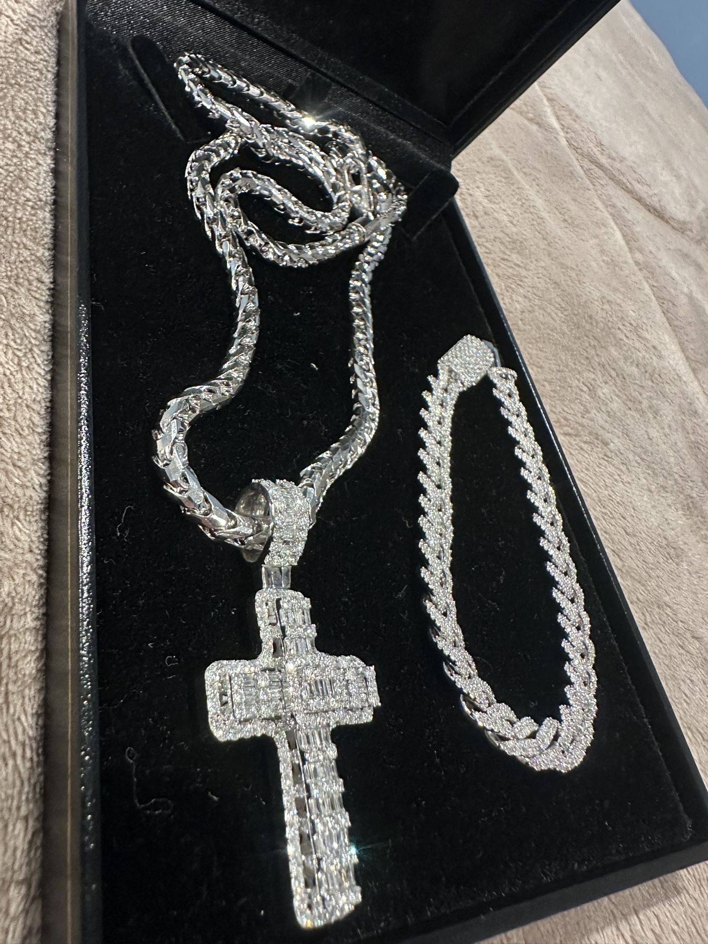 diamond cross chain and bracelet