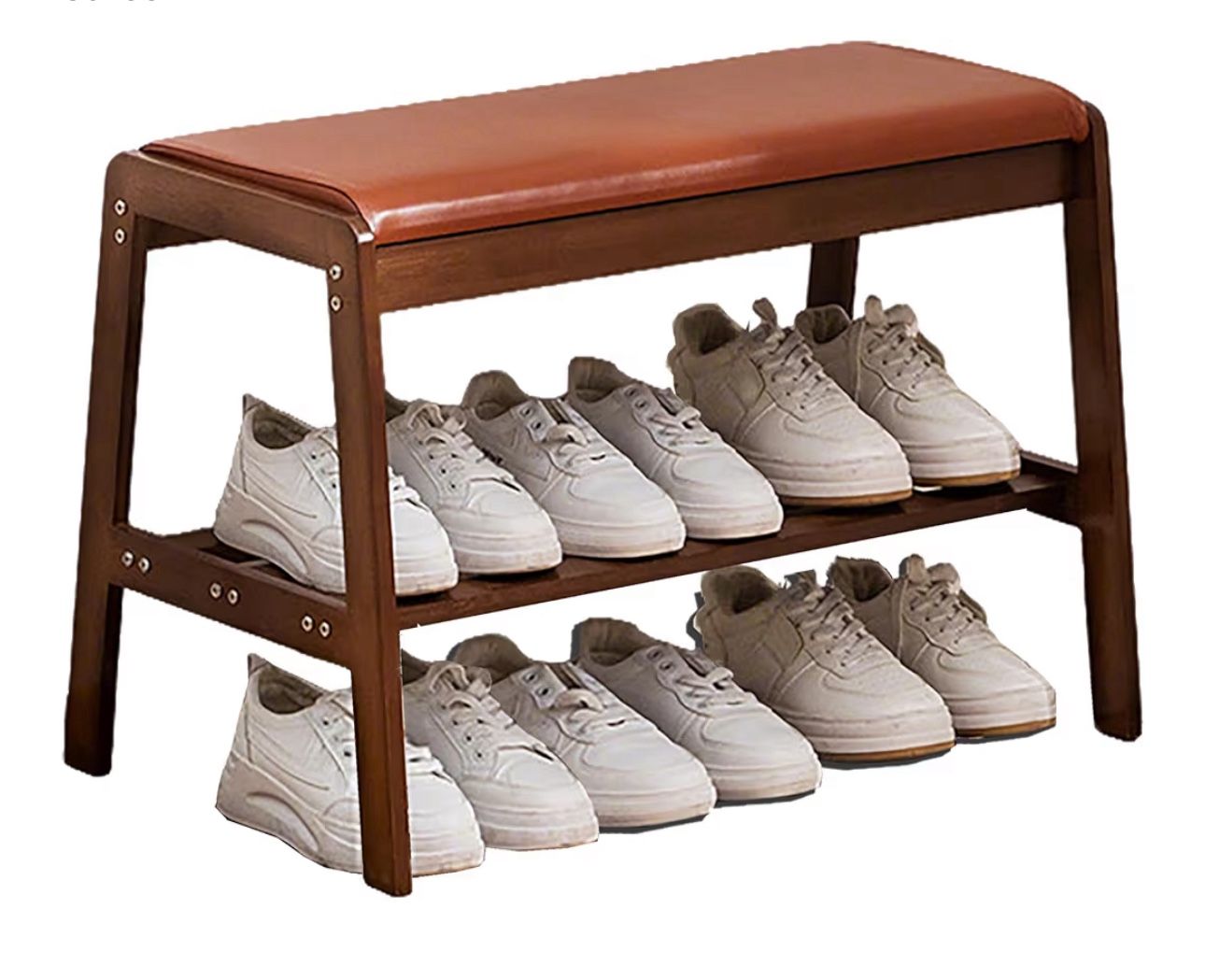 Bamboo Shoe Rack Bench, 2-Tier Wooden Entryway Bench with Cushion, Small Shoes Organizer for Entryway, Living Room, Bedroom