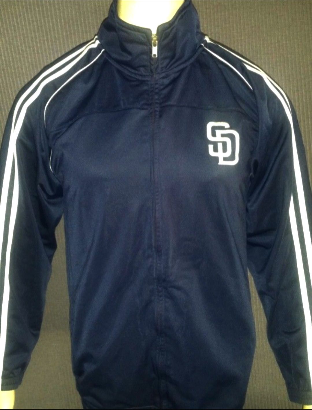 Retro San Diego Padres track jacket Y XXL Men S Women M Fits a men small size or woman small to medium size person too MLB Genuine Merchandise brand Great to wear around town or to a Padres game Excellent condition great price
