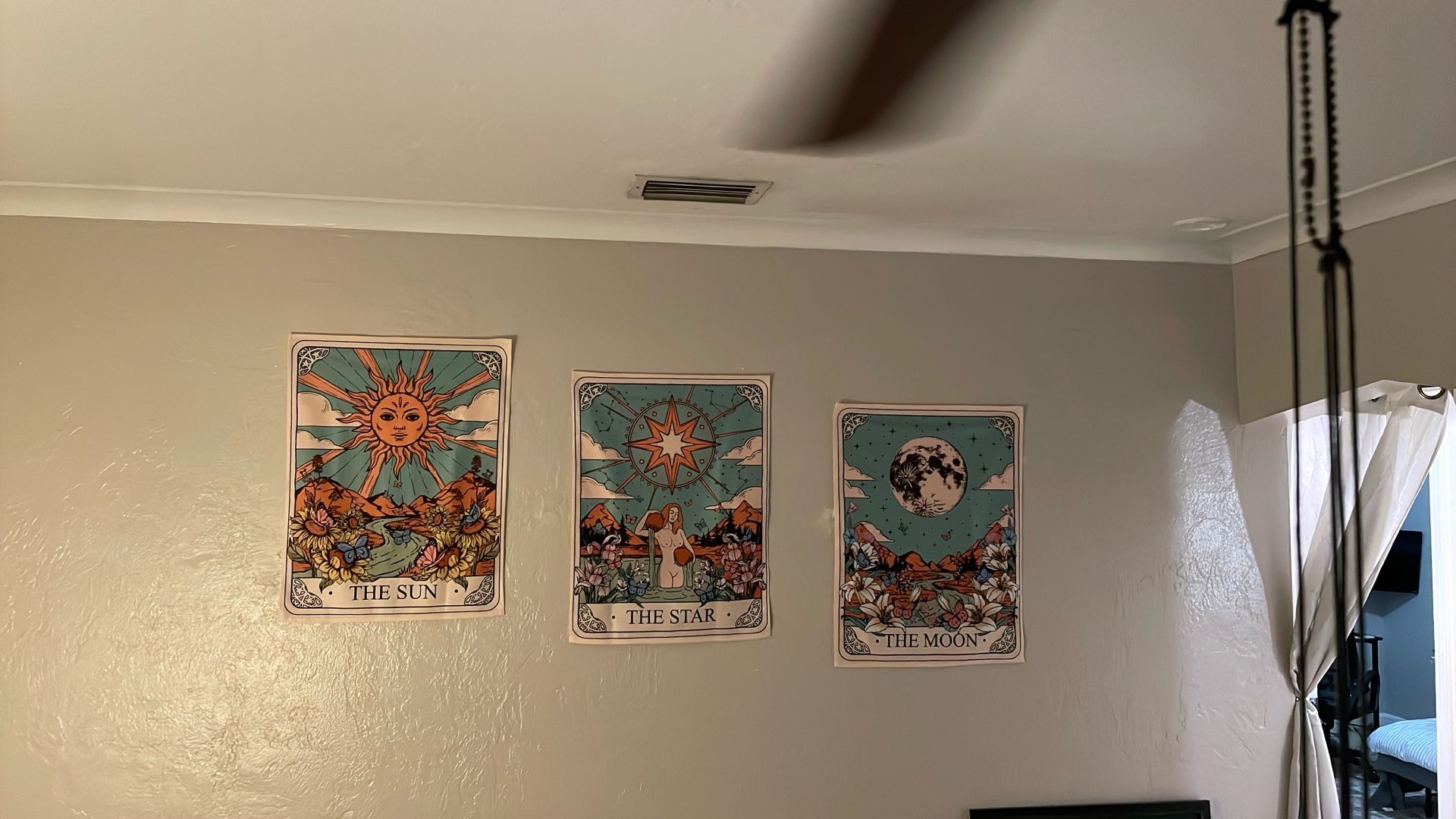 Set of three - “The Sun,” “The Moon,” and “The Star” plush, thick and velvet soft fabric tapestries richly printed on 100% polyester. Like new and available for pickup.