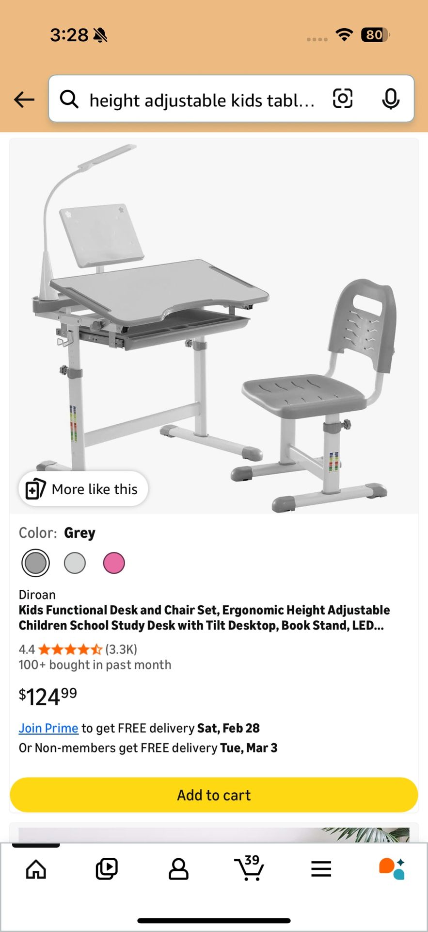 I Kids functional desk and chair set Very good quality, 90% new, stable and reliable construction, Height adjustable, With book stand, tiltable desktop and drawer Without light