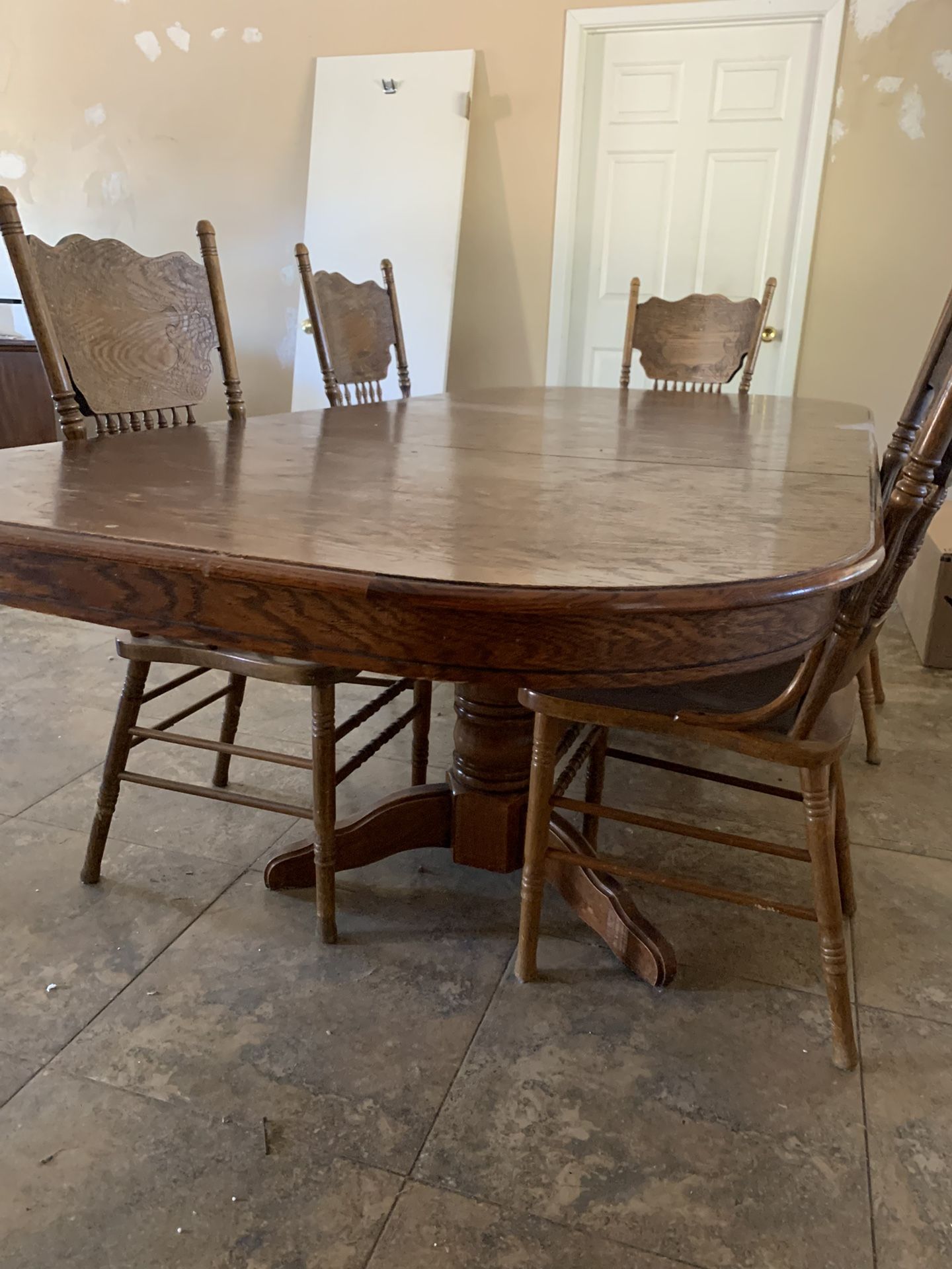 Oak table and chairs with leaf 5 chairs