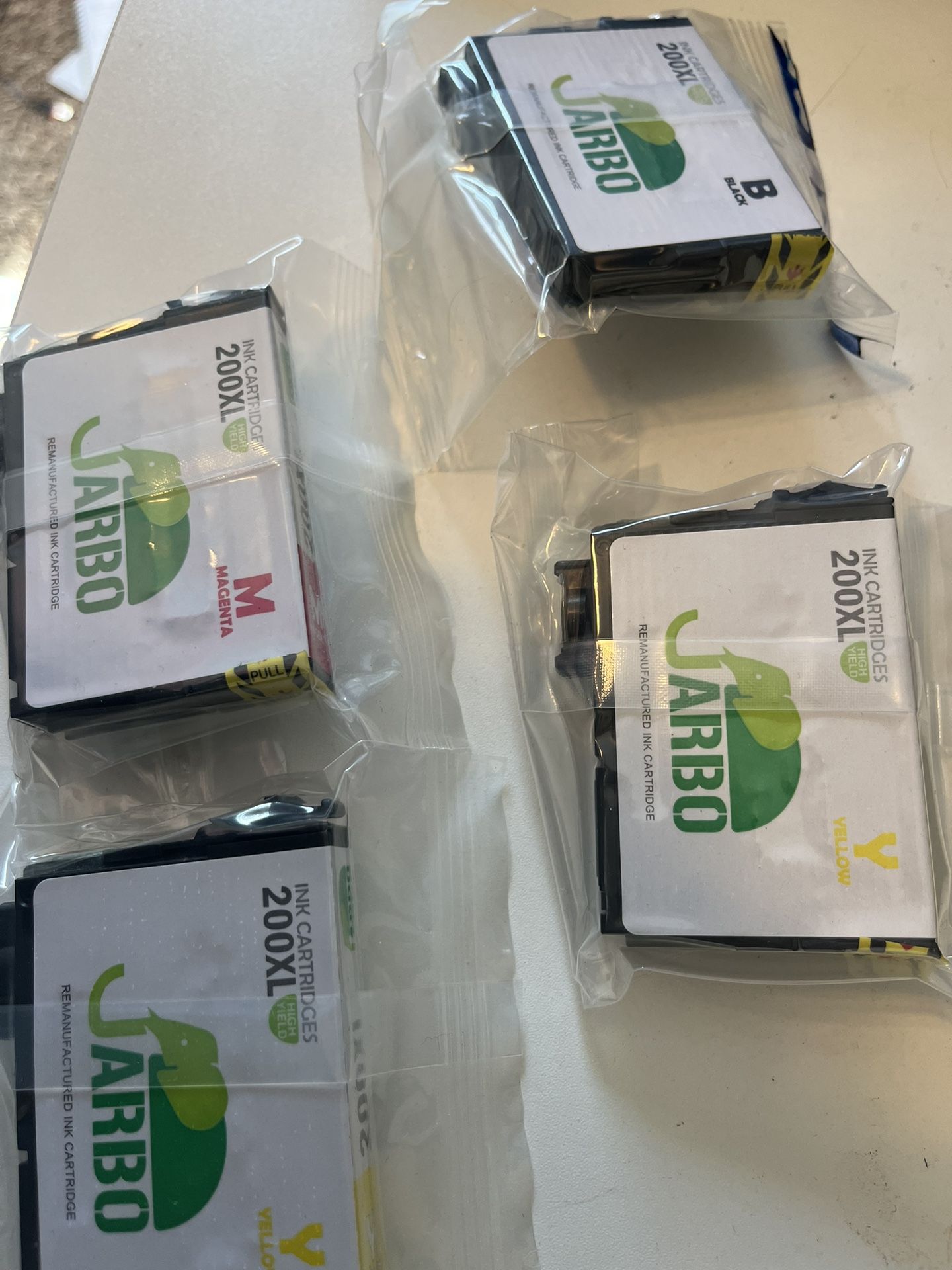 Two yellow, one magenta, one black Jarbo Printer Ink 200XL in package