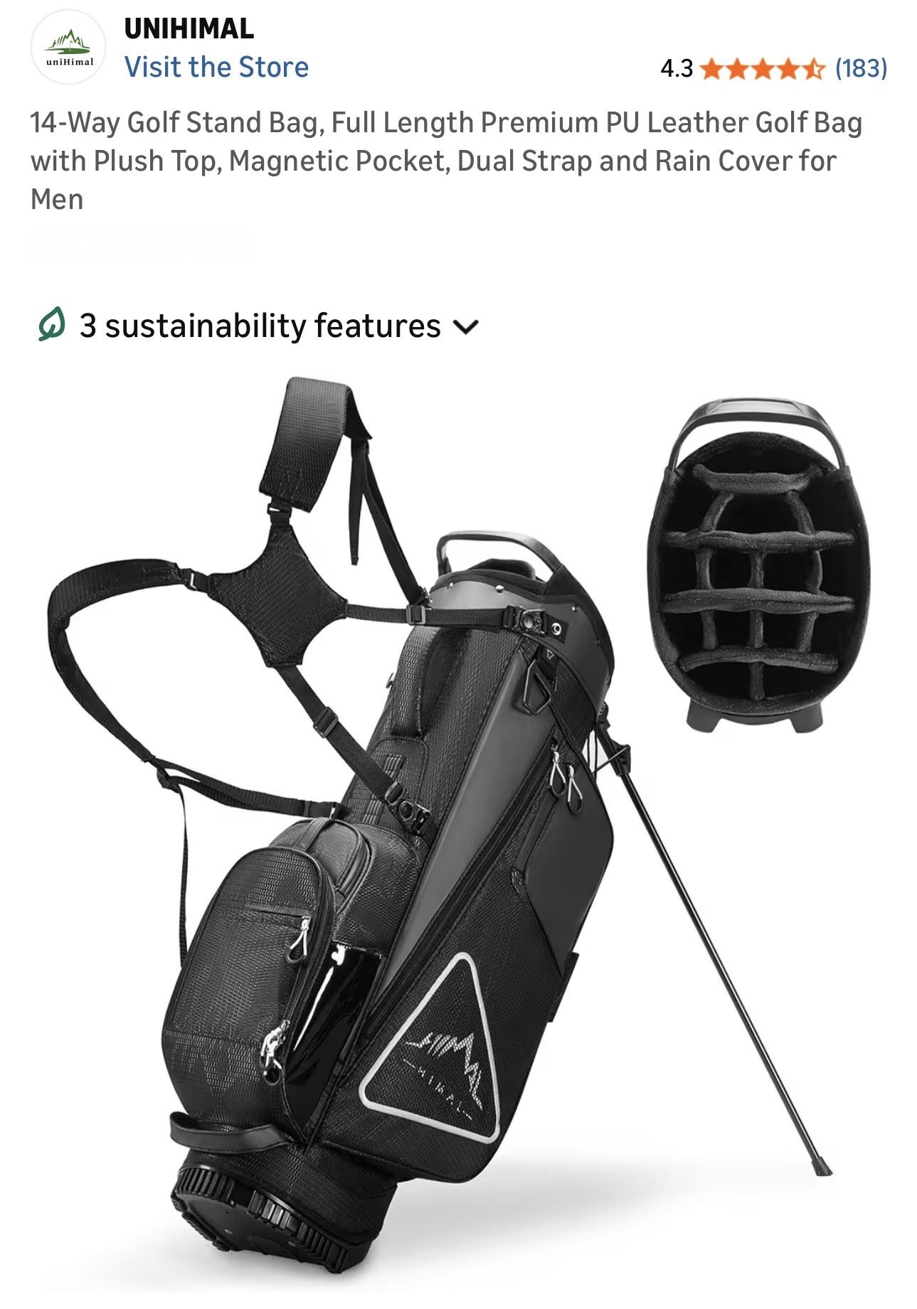 $100 Brand New Unihimal 14-Way Golf Stand Bag, Full Length Premium PU Leather Golf Bag with Plush Top, Magnetic Pocket, Dual Strap and Rain Cover for Men