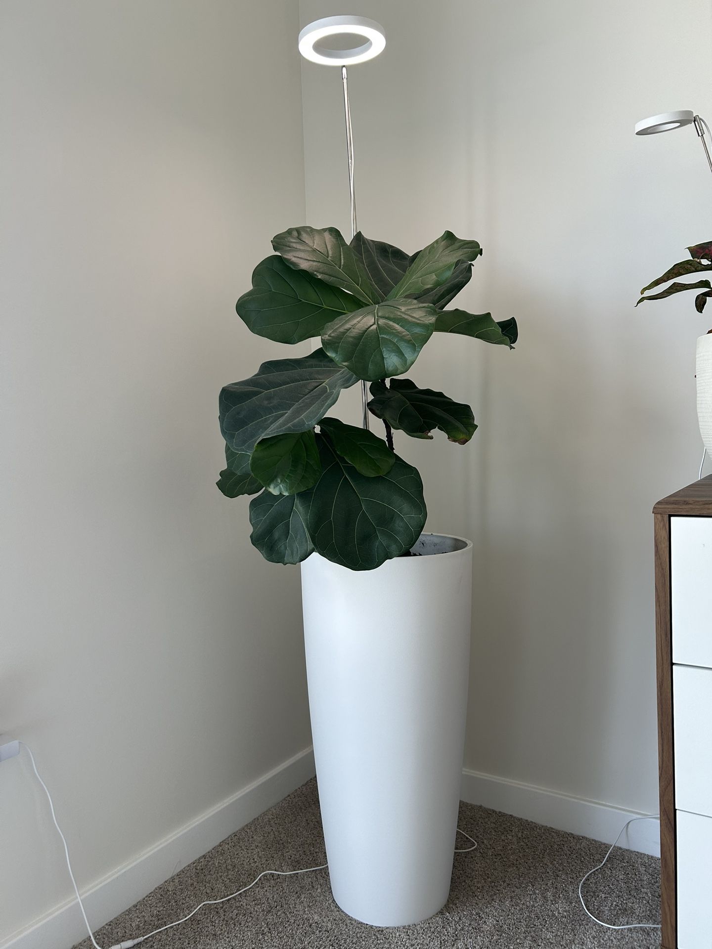 Healthy Fiddle Leaf, Pot, And LED Halo Grow Light