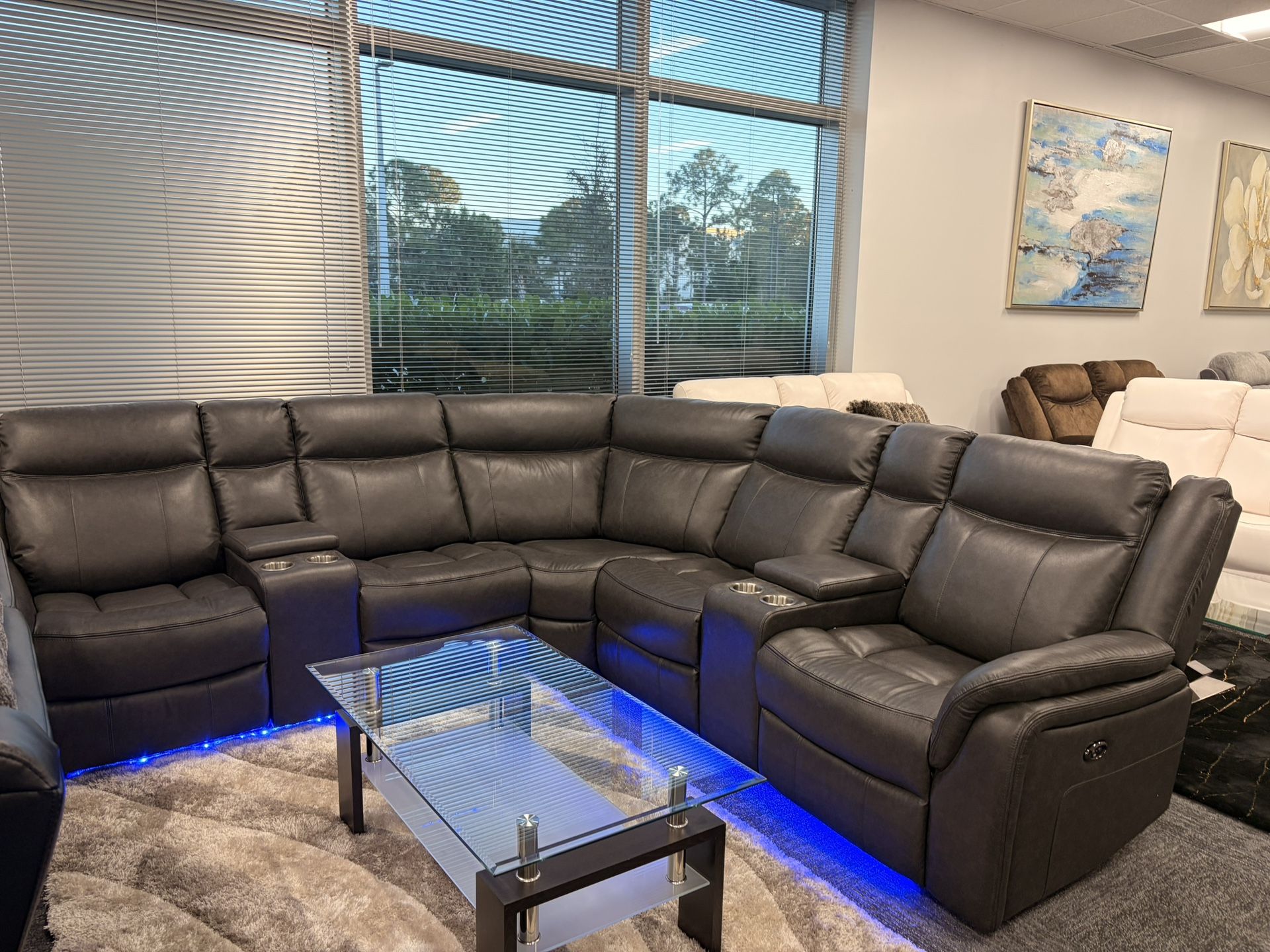 Gray/Brown Man-Made Leather Power Reclining Sectional On Sale Now! (Delivery Asap)!