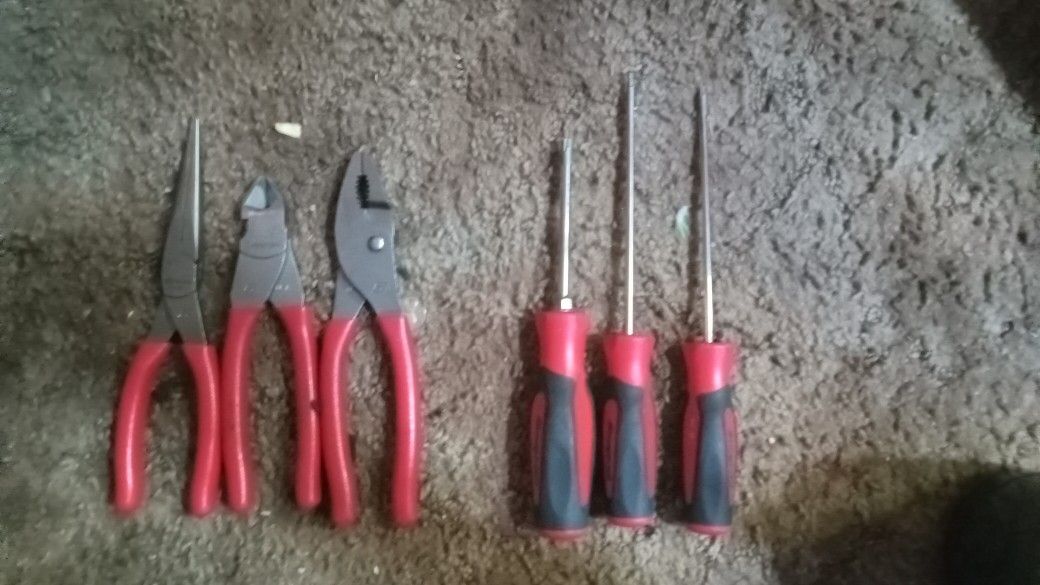 air tools plyers,diks,needle nose,3 hex tips of different sizes. and 3 quarter impact made by snap on there all brand new they don't have the charger ...u gotta by that saperate....for all the tools it's 700.00 or best offer :^)