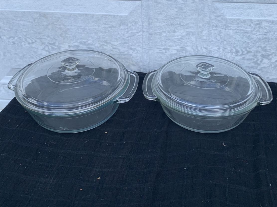 2 Anchor Hocking Ovenware 9” Round 2Qt And 8.25" 1.5 Qt. Baking Dishes With Lids