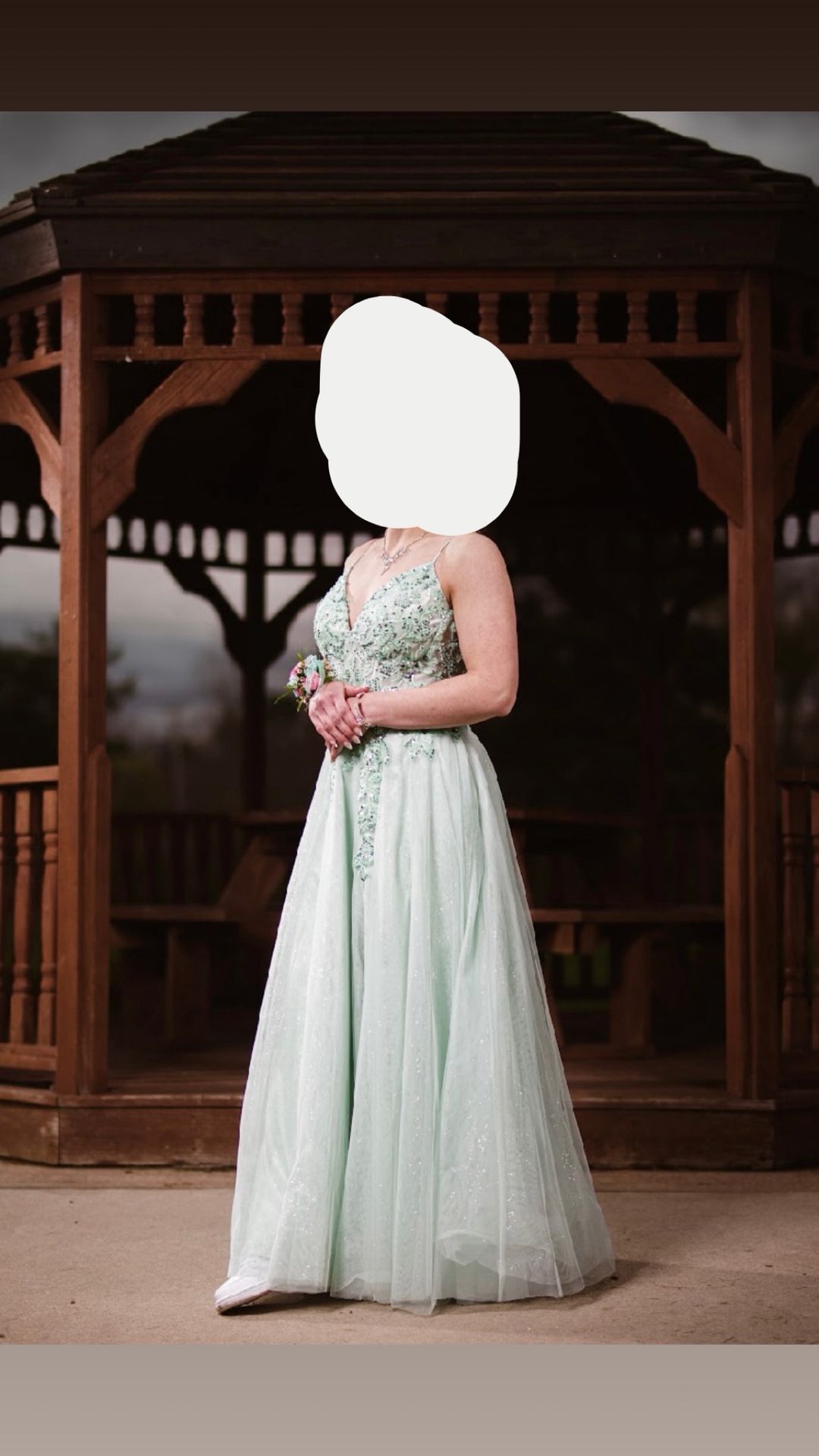 Mint Green Prom Dress Size:10 Worn once The women wearing the dress is 5’4” Slit on the side From Brides and Bells In Reedsburg WI Dress bag included