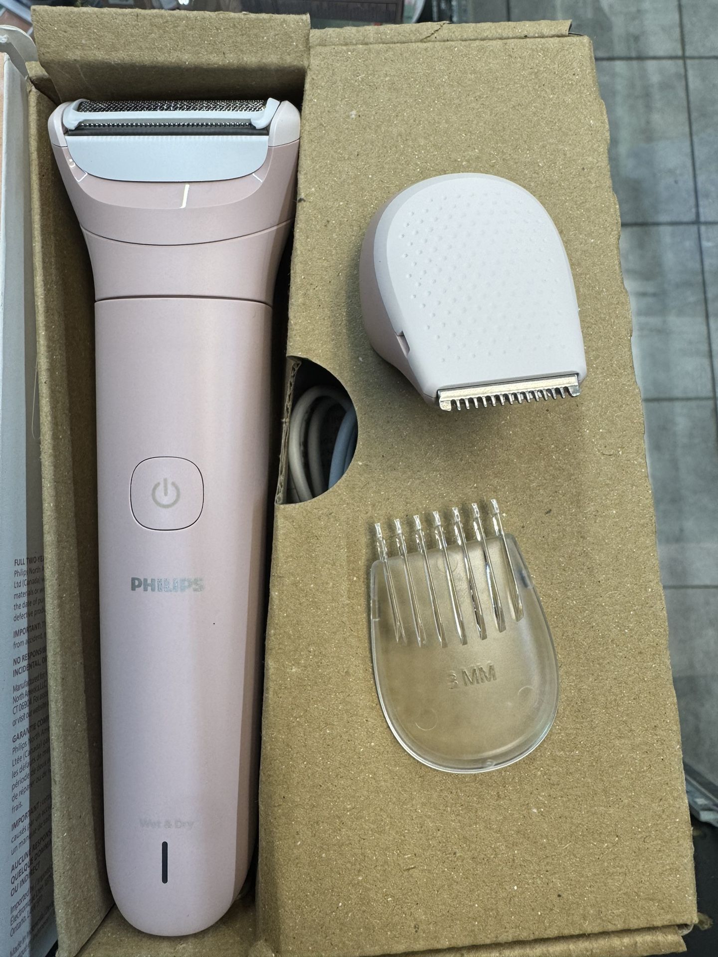The Philips Lady Electric Shaver Series 6000 is a cordless electric shaver that can be used for wet or dry shaving. It is designed to be gentle and comfortable on the skin and has rounded trimmer tips that help the shaver glide smoothly over the skin. It is also shower safe.