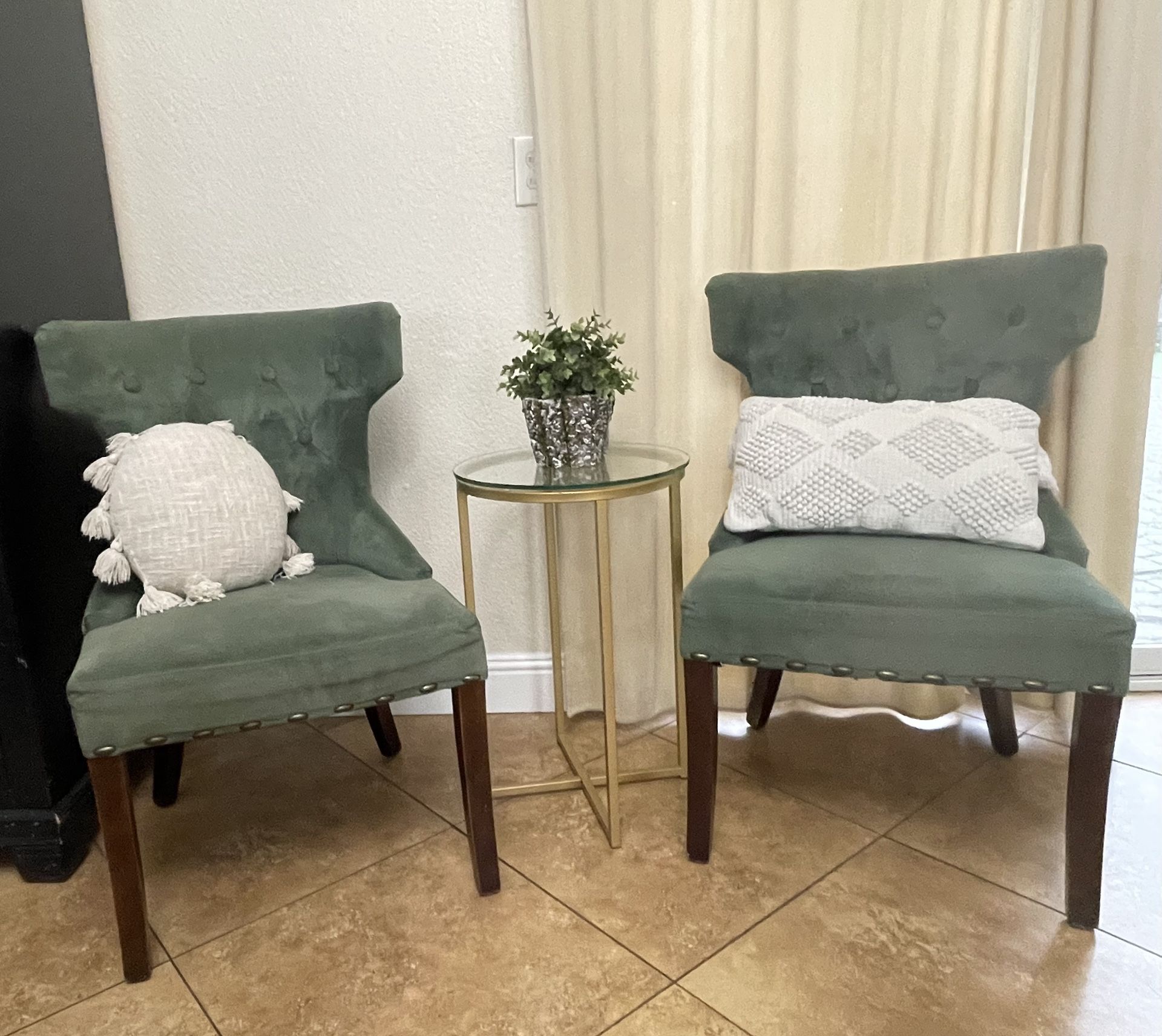 2 chairs. Used for wedding reception. No longer need. Great condition. Clean. 2 gold tables also for sale.