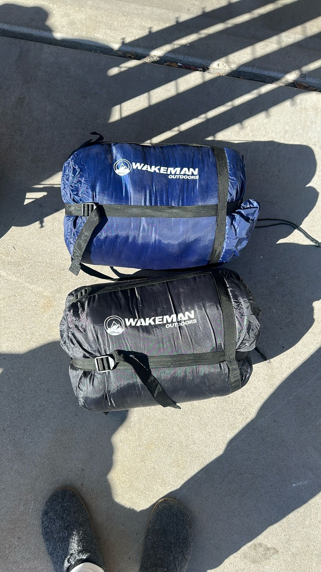 Wakeman outdoor sleeping bags, very light weight but super comfy, durable and warm $15 each or $25 for both