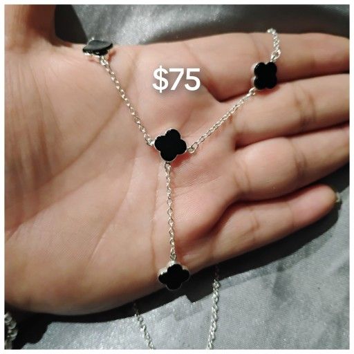 925 Sterling Silver Clover Leaf Necklace/Collar De Hoja De Trevol De Plata 925