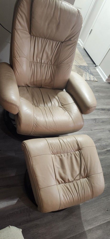 Cream Leather Swivel Recliner And Ottoman Set