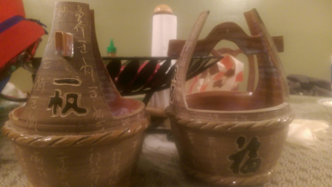 Pair of Chinese ceramic water buckets with Chinese inscription. Beautiful addition to your Asian decor.