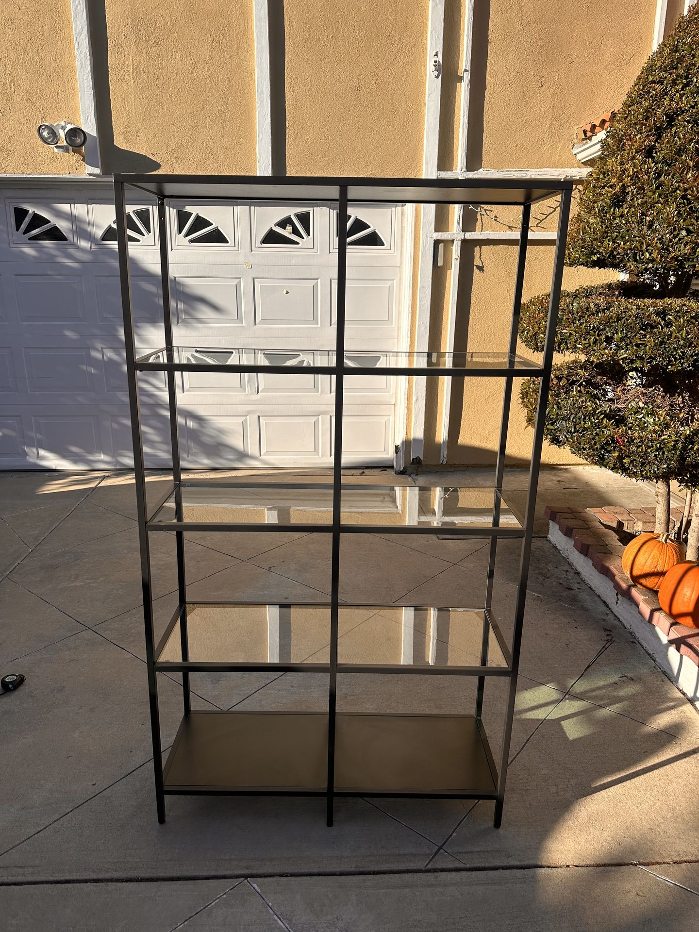 Standing Glass Shelf Width: 3’ 3 3/8” Height: 5’ 9” Depth: 1’ 2 1/8”
