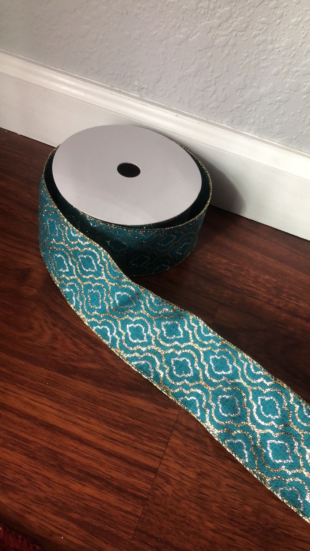 2.5 inches teal silver & gold ribbon 10 yards Pick up only