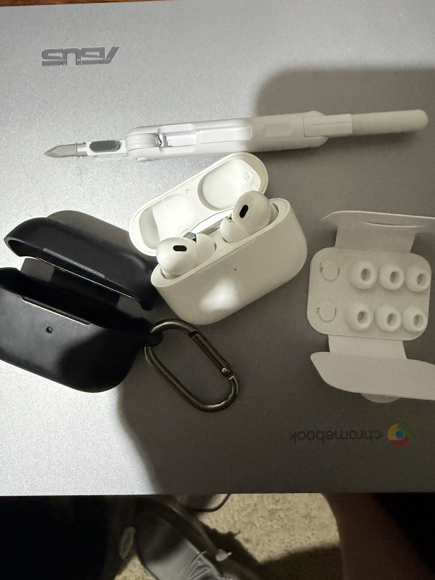 AirPods Pro 2 comes w/ charging case, cleaning tool, and replacement tips.
