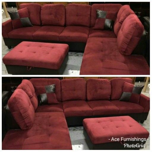 Brand New Red Microfiber Sectional With Storage Ottoman