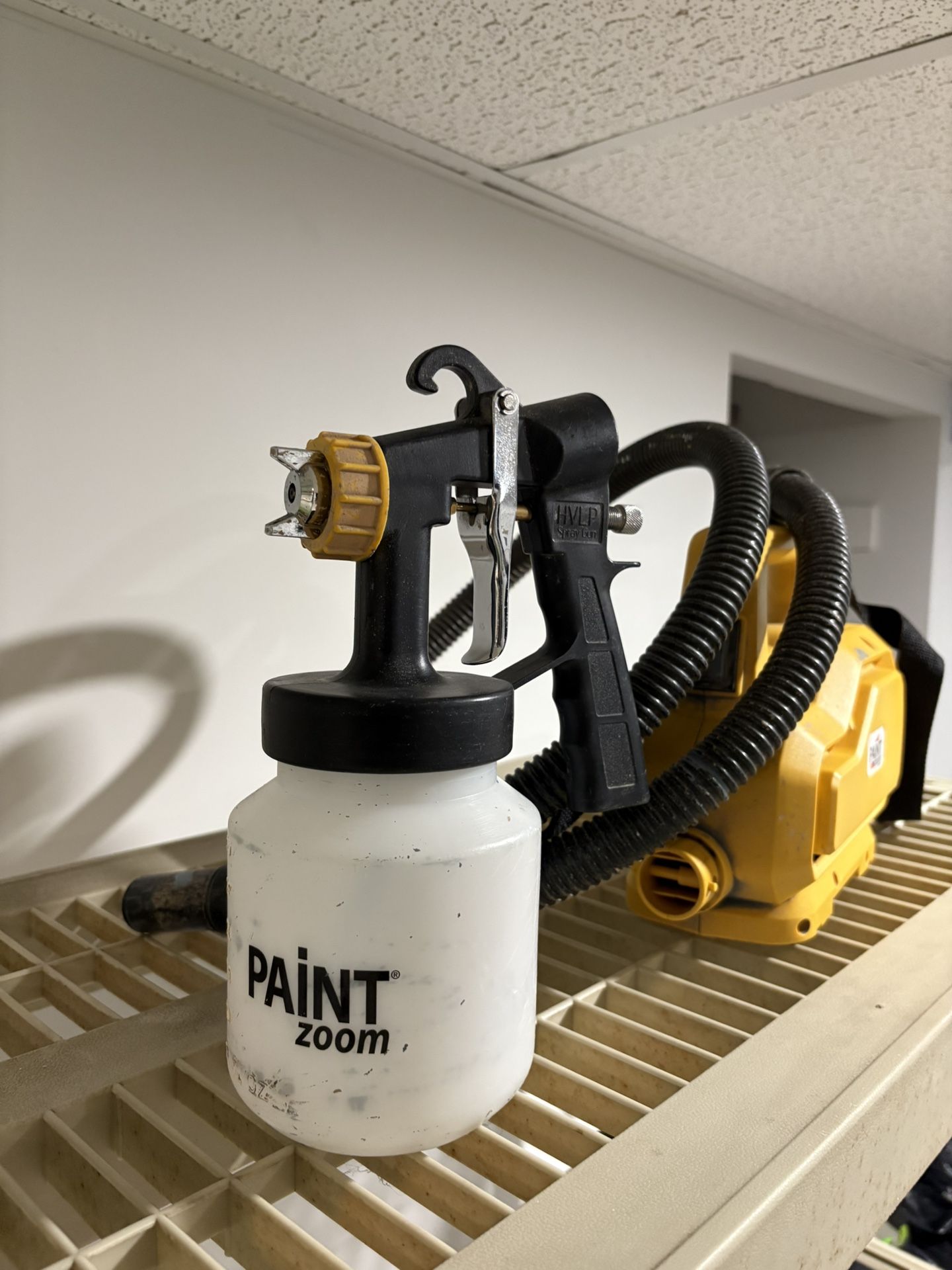 Paint Spray Gun (brand Zoom), , electric like new is only is been used four times to paint my whole deck. Good spray gun with different pressure settings on nozzle. Easy to use light weight bottle with a strap on belt.