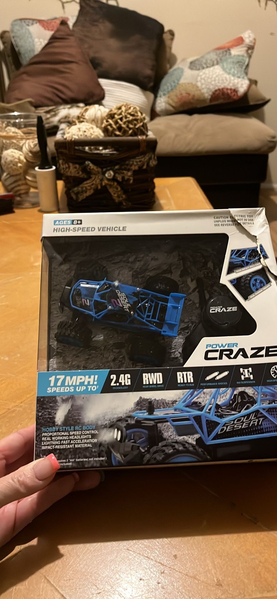 Brand new in box craze remote control car. Retail for $30 my son didn’t want. We have a different one they go pretty fast for such a little car. Smoke free home cross posted