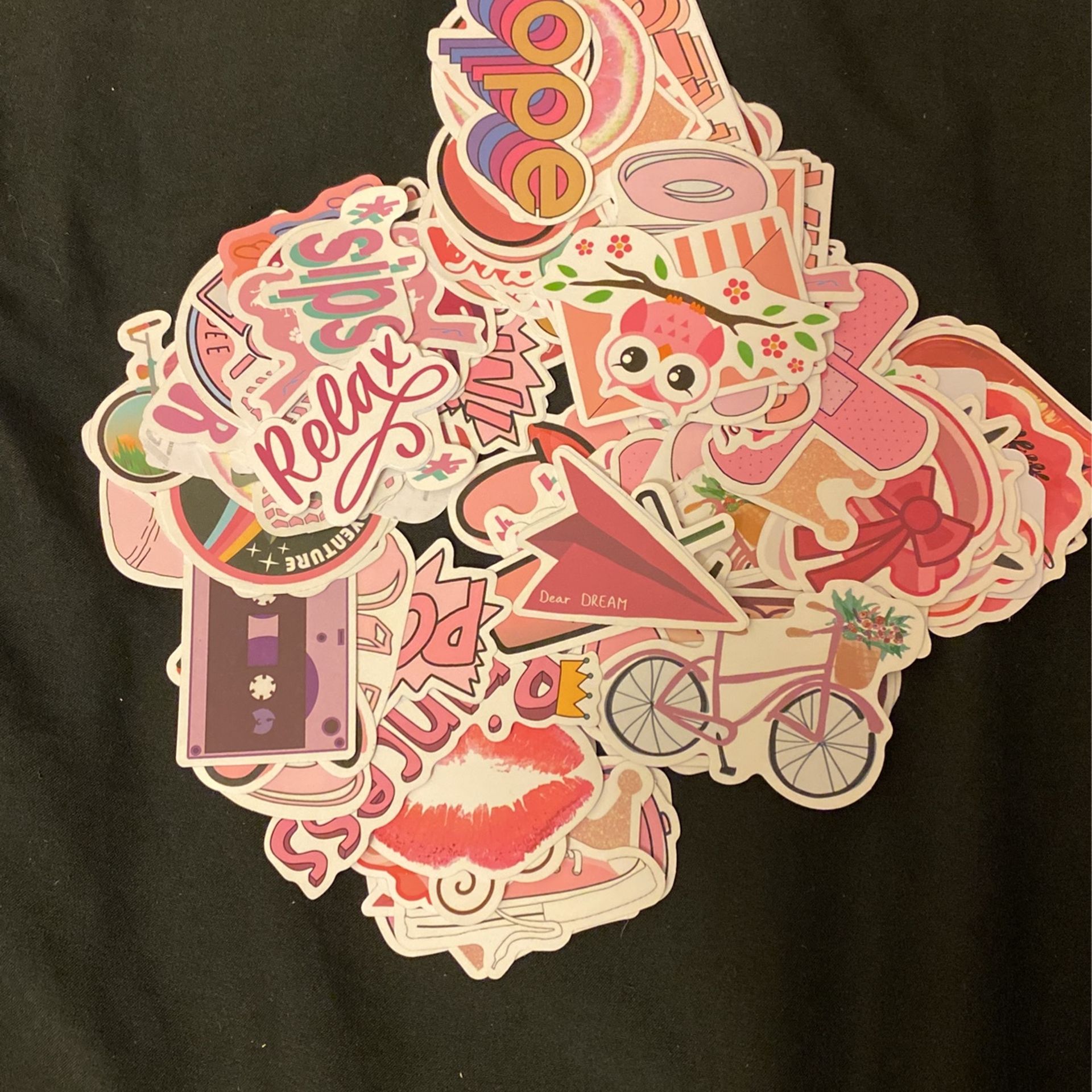 2 bags of random pink stickers and random purple stickers.