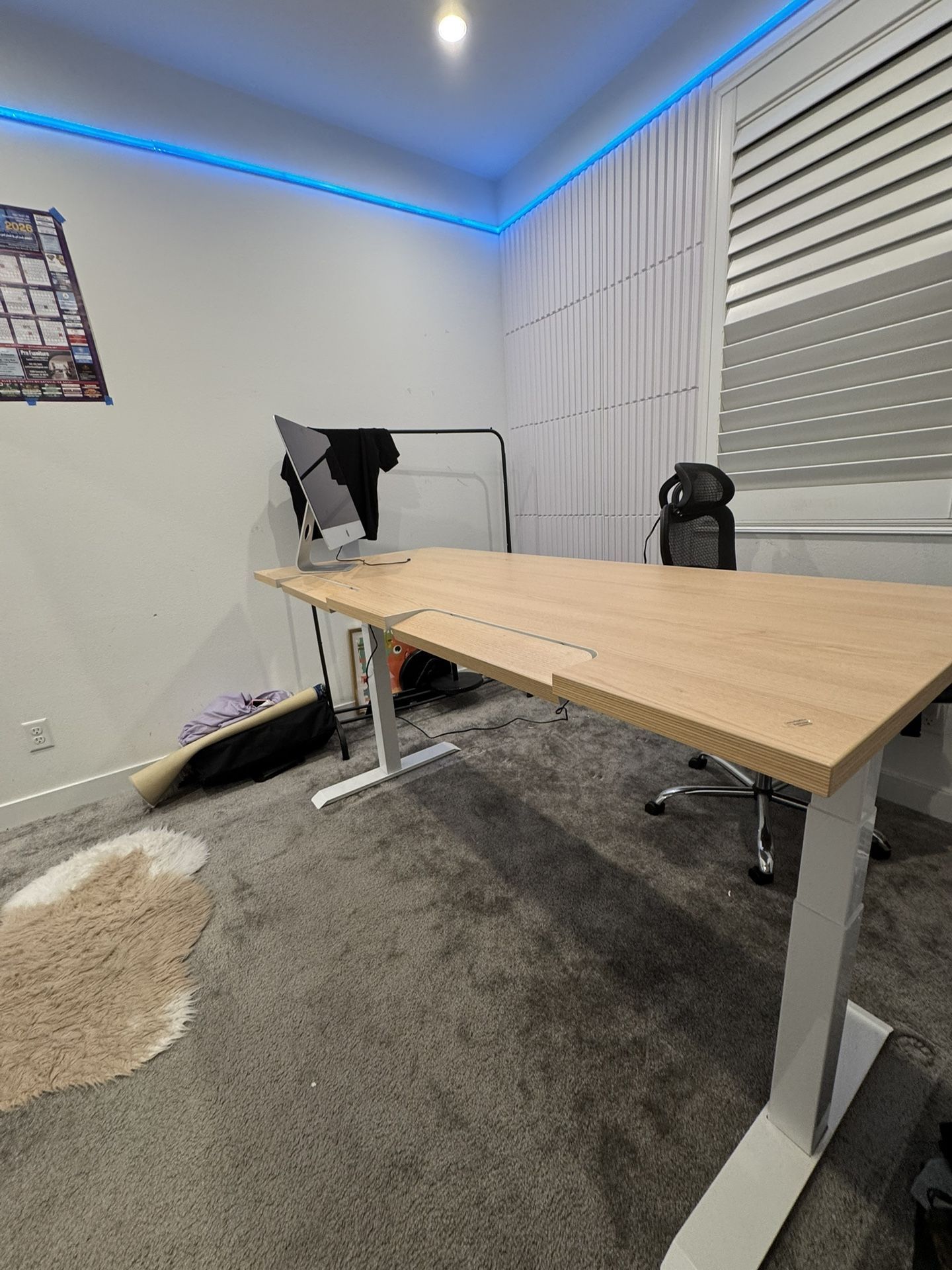 electric standing desk large 90”x 28” (approx) solid wood top sit stand office computer desk