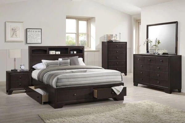 5 Piece King Size Bedroom Set With Super Comfy Memory Foam Mattress Included