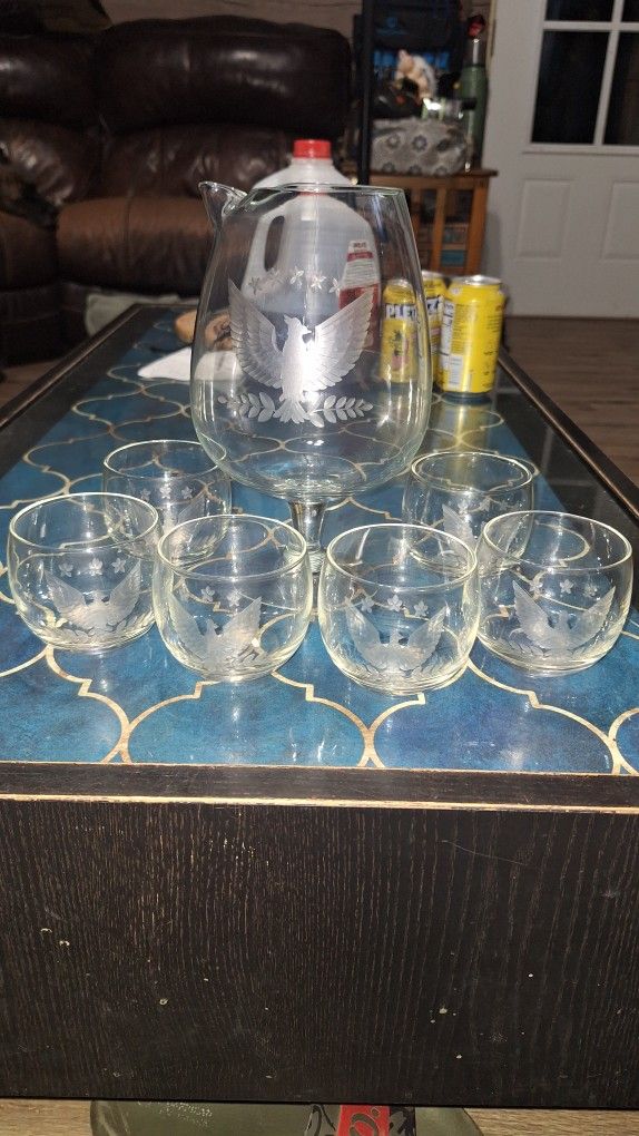 Everything I've been able to find shows and says this is a vintage 1950's - 1960's pan am presidential pitcher and glass set $125 obo