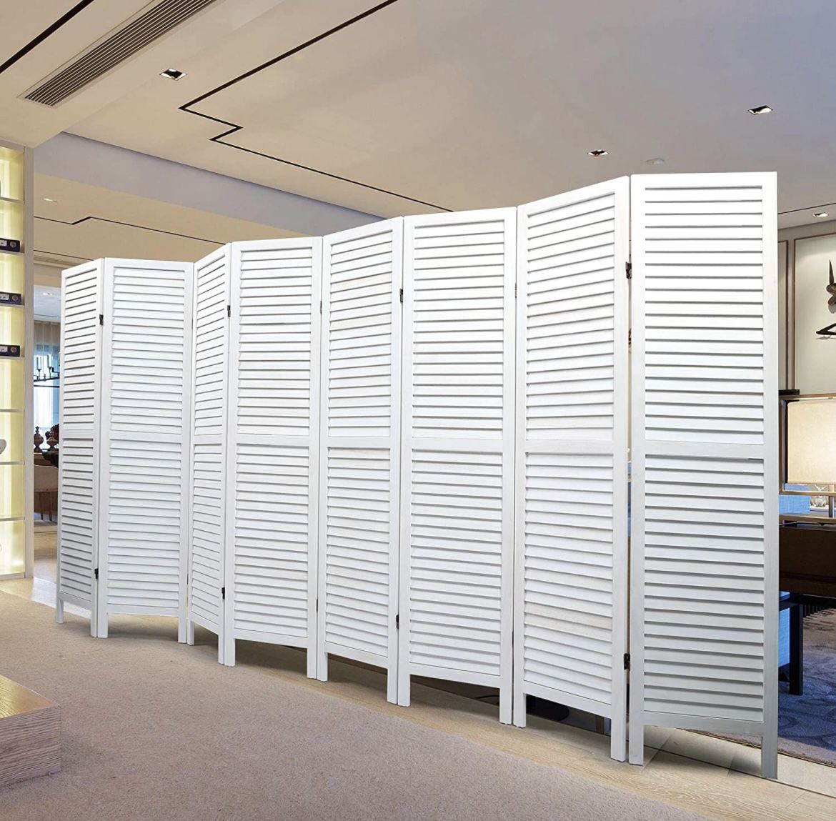8 Panel Wood Louvered Room Divider, 5.6 Ft Tall Oriental Folding Freestanding Privacy Screen Room Dividers for Home, Office, Bedroom (White) pickup preferred