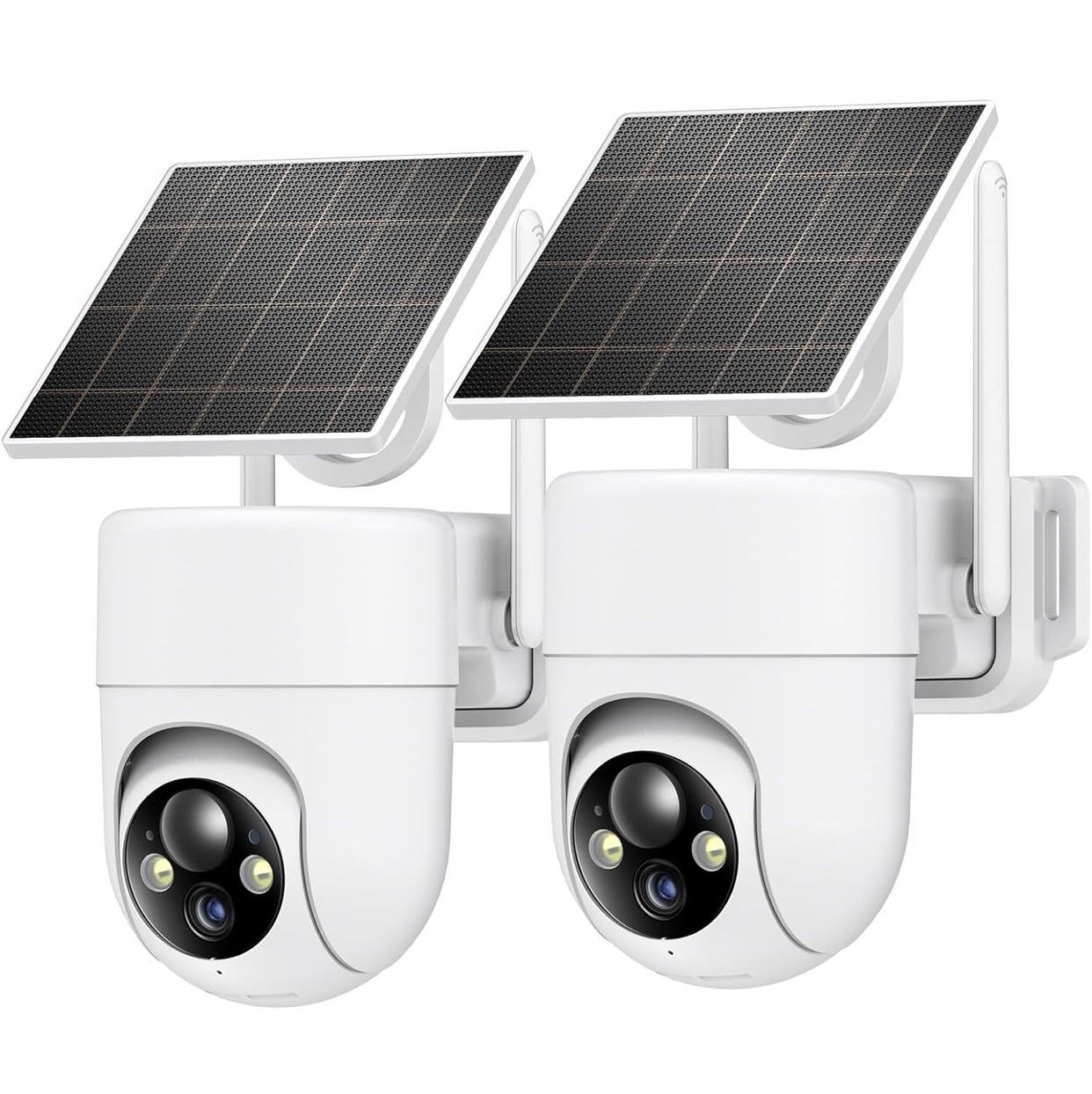 Oculview 2K Solar Security Cameras Wireless Outdoor, 2PCS Outdoor Camera Wireless with 360° View, Cameras for Home Security with Color Night Vision/2-Way Audio, 2.4GHz Wi-Fi Only #🛏️