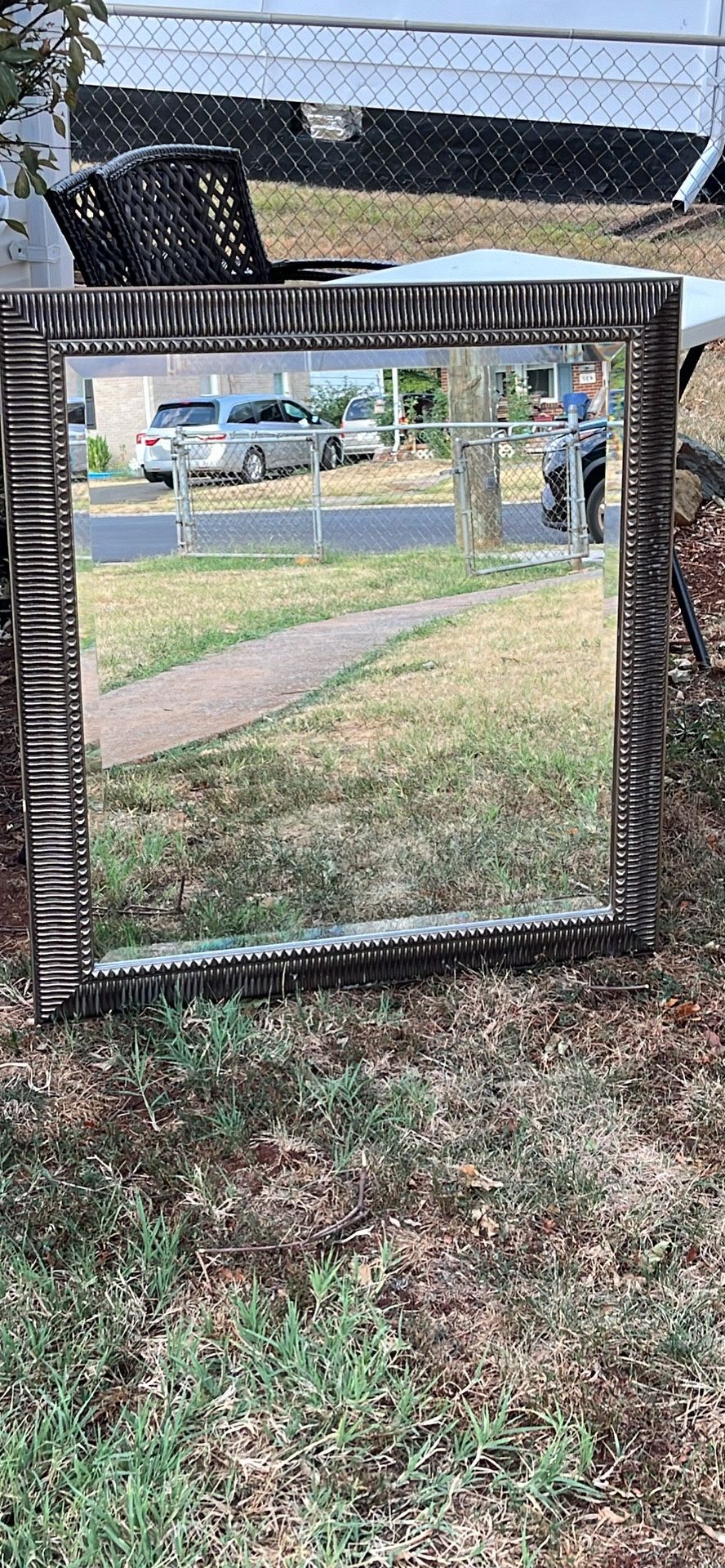 Heavy gold framed mirror . 36”tall and 34” wide.