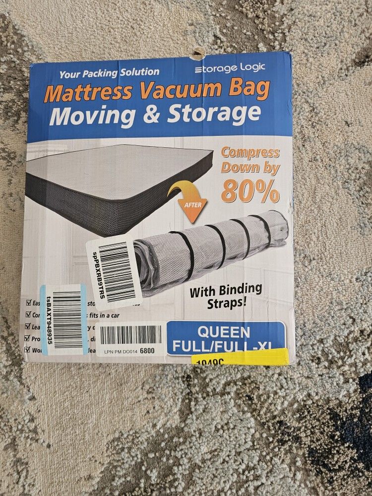 Never been used, in the box mattress vacuum bag! Great for moving or storing. Fits full and queen