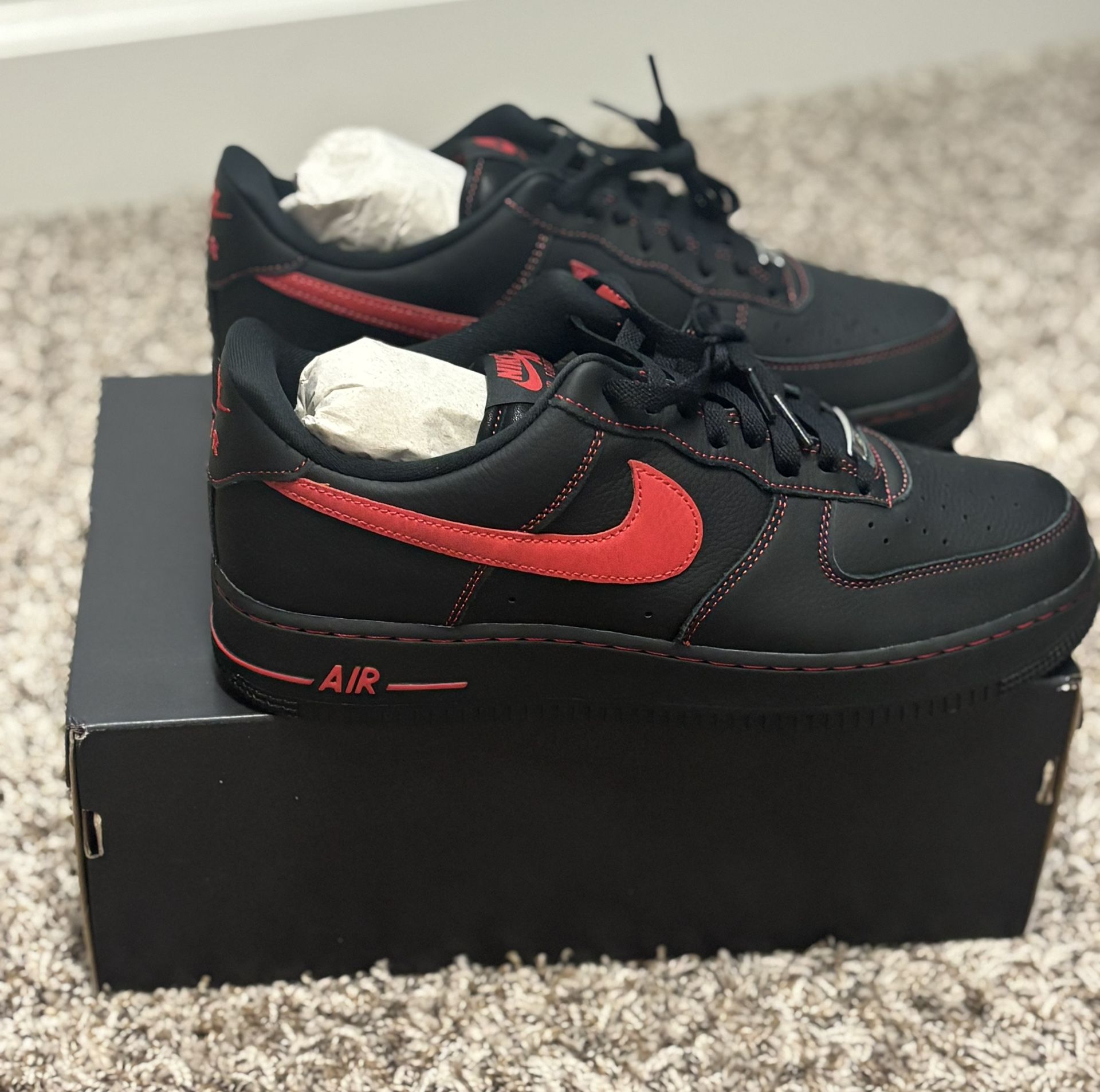 $100 NEW IN BOX Size 10 1/2 Mens Air Force 1 ‘07 LV8 Black/University Red-Black