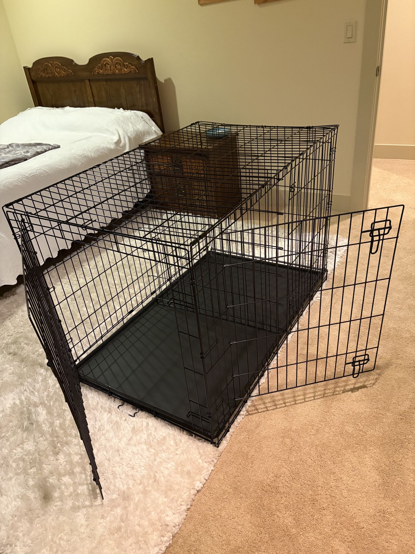 Looking for a reliable and spacious ( 48”L X 30”W X 33”H) dog crate? This iCrate Model 1548DD is in excellent condition and ready for a new home! It features a durable, easy-to-clean design with double doors for convenient access and secure latching with a plastic floor pan. There is a divider to reduce its size for smaller puppies. Perfect for medium to large dogs, this crate provides both comfort and safety for your furry friend.