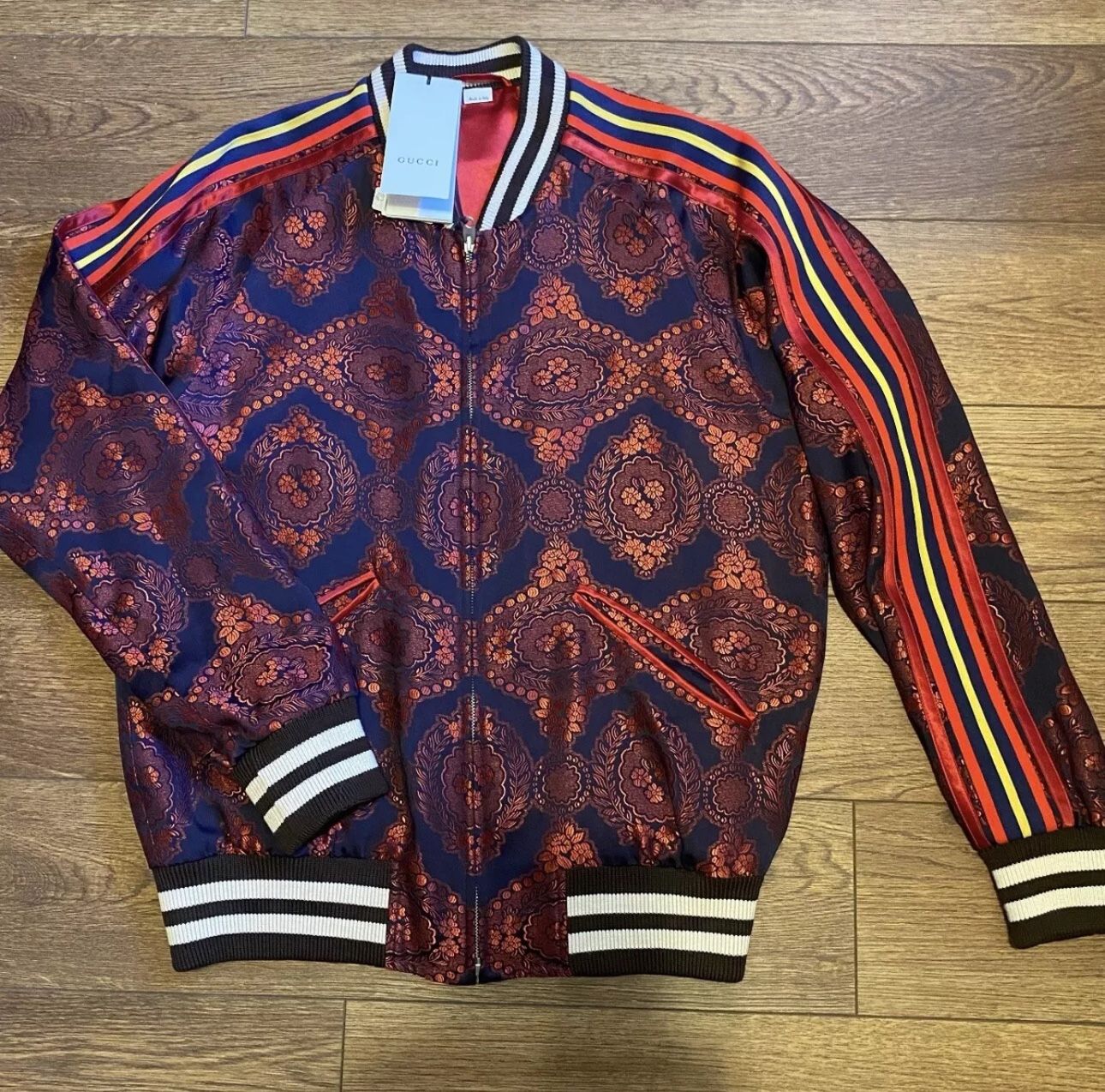 $2,800 Gucci Men's Baroque Jacquard Track Supreme Red Jacket 46EU