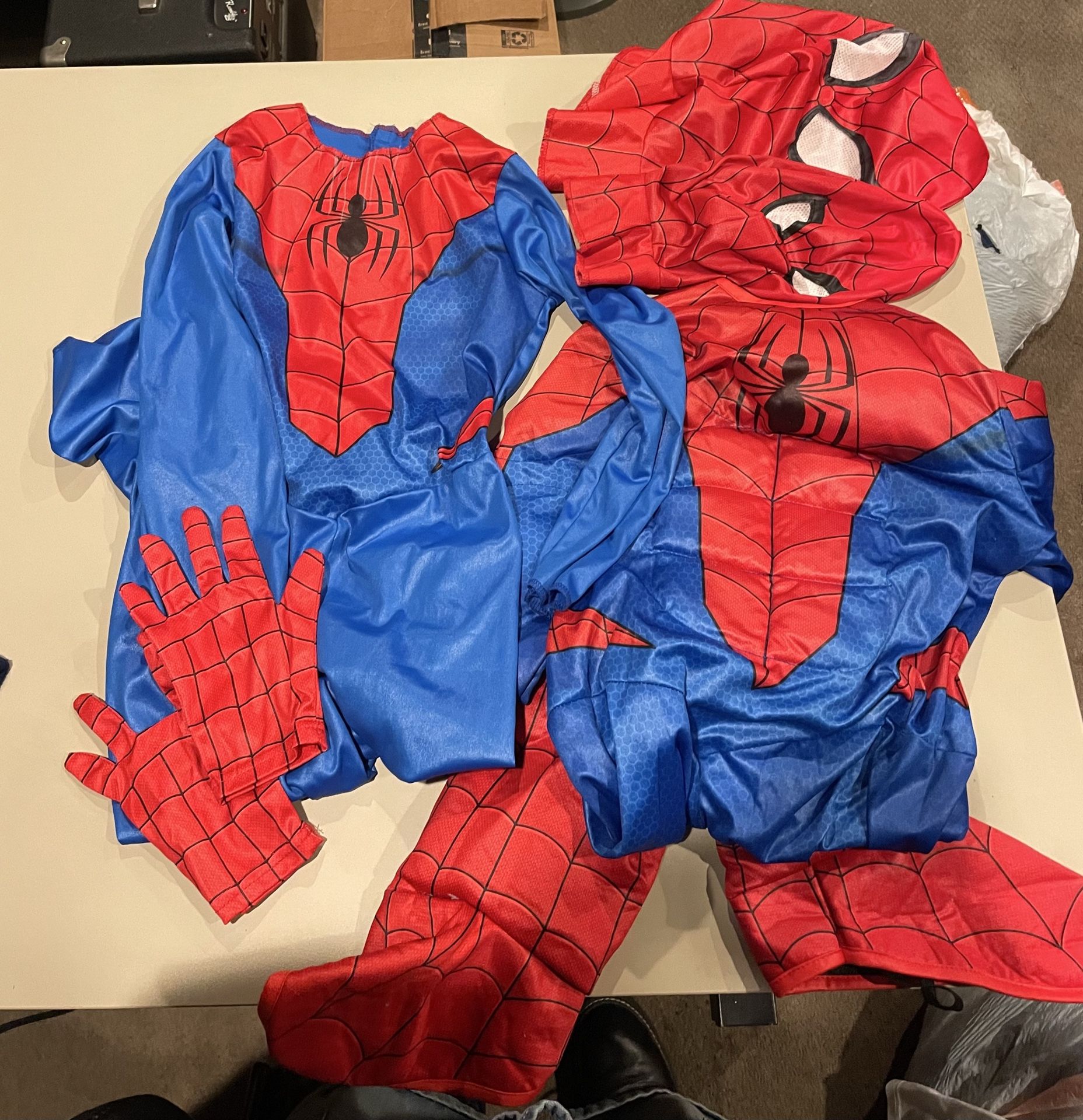 Contains shark swimsuit, Spider-Man costumes, shirts, shoes, shorts, pants, etc. as shown. Most are new. Sizes : mixed, 7, 8 I have more clothes on my profile.