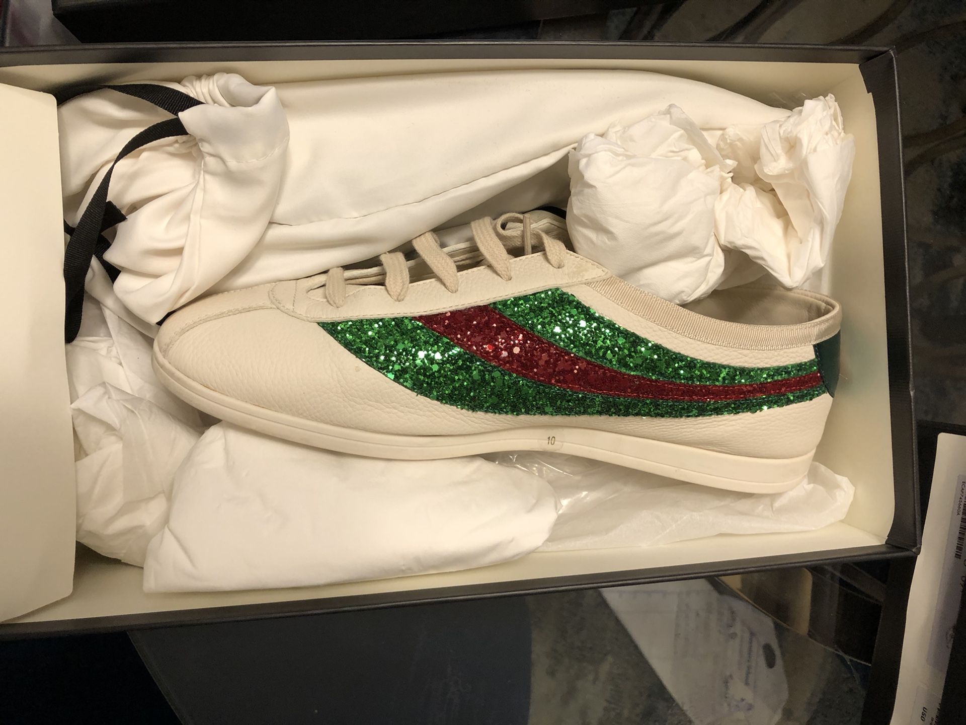 Worn 1x Gucci glitter sneaker size (43)(10). Og all no trades. Need gone ASAP only serious inquiries. Retail shown in pics