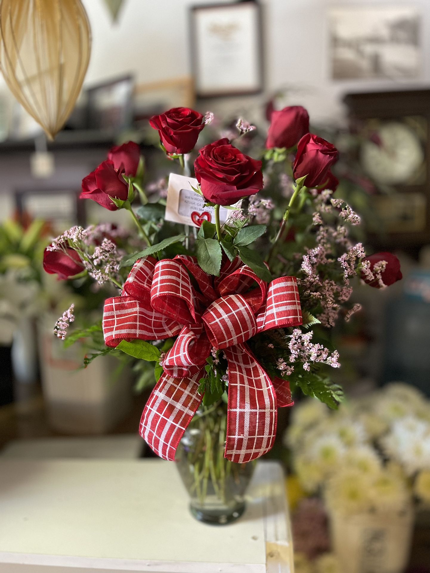 Beautiful 1- Doz long stem red roses and a clear vase