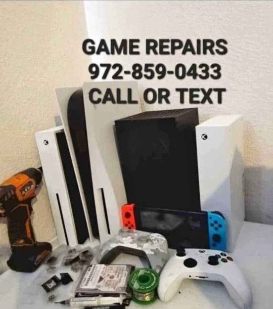 Parts available for repair Xbox series s x ps4 s pro playstation 5 nintendo switch oled Any issue we can fix it Stick drift is available Hablamos español areglamos juegos y computadoras de todo problemas 8am-830pm mon-sun Areglamos controllers stick drift and analog Overheating Blue light blinking Remotes losing signal Cd drive Replacement jammed or stuck cd Power supply replacement C port Replacement Randomly shutting off in the middle of the game Hardrives and SSD Replacement Loud fan USB Replacement Fan Replacements Stick drift on all Remote Updateerror or safemode